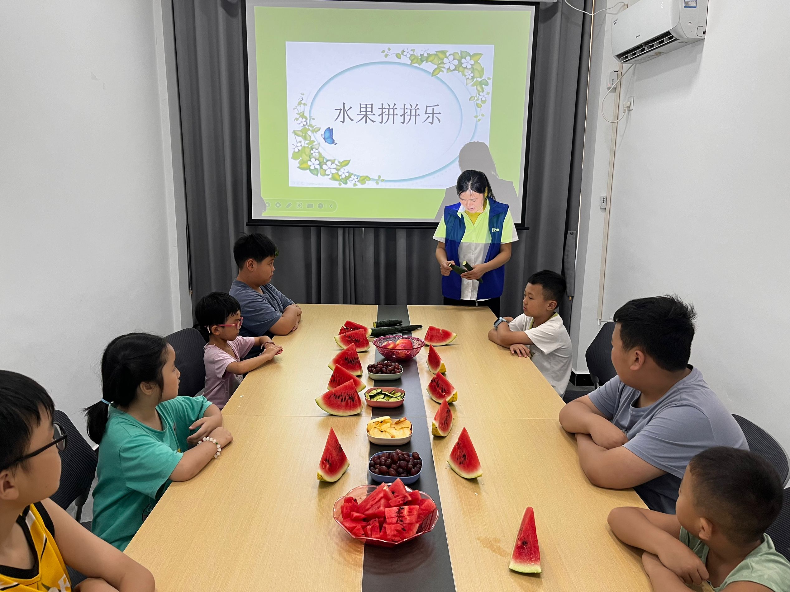 “炎炎夏日,有你真甜”水果拼拼乐活动在社区活动室开始了,小朋友们发挥想象力,用自己的双手制作出一盘盘好看的水果拼盘。此次活动加深了孩子们对各种水果的认识,体验创作的乐趣,了解多吃水果有益健康,同时更好的培养孩子们的创新意识和实践能力。