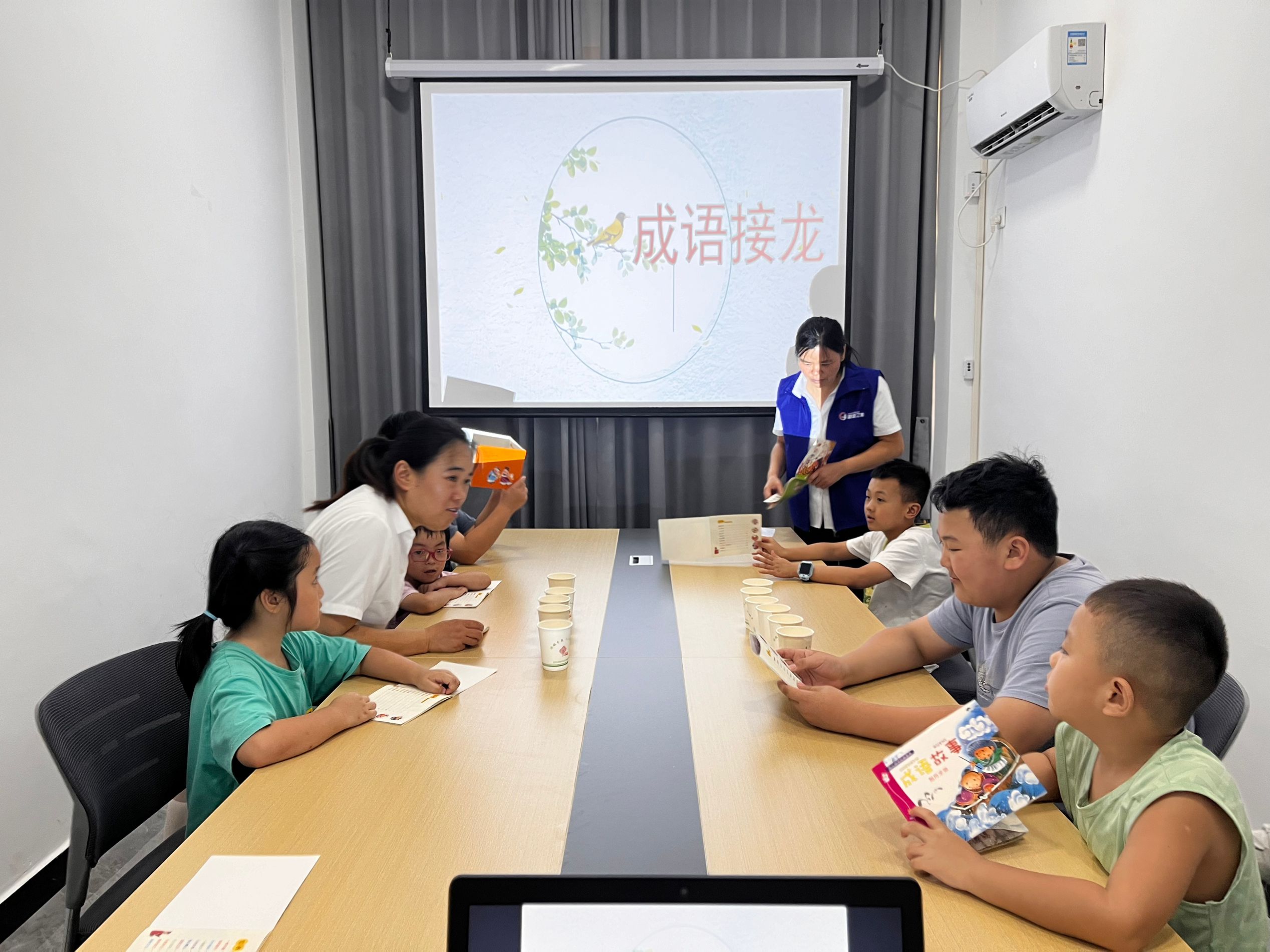 志愿者首先介绍了成语接龙的游戏规则,鼓励孩子们积极参与,发挥想象力与创造力。随着活动正式开始,现场气氛热烈,大家举手发言,有的孩子一听到前一个成语,便能迅速接出下一个成语;有的孩子虽然一时想不起答案,但在工作人员的提示下,也能顺利过关。一个个中华成语带着传统文化特有的气息迎面走来,所有参与到其中的人都沉浸在这浓浓的文化气息中,沉浸在这激情四溢的氛围中。