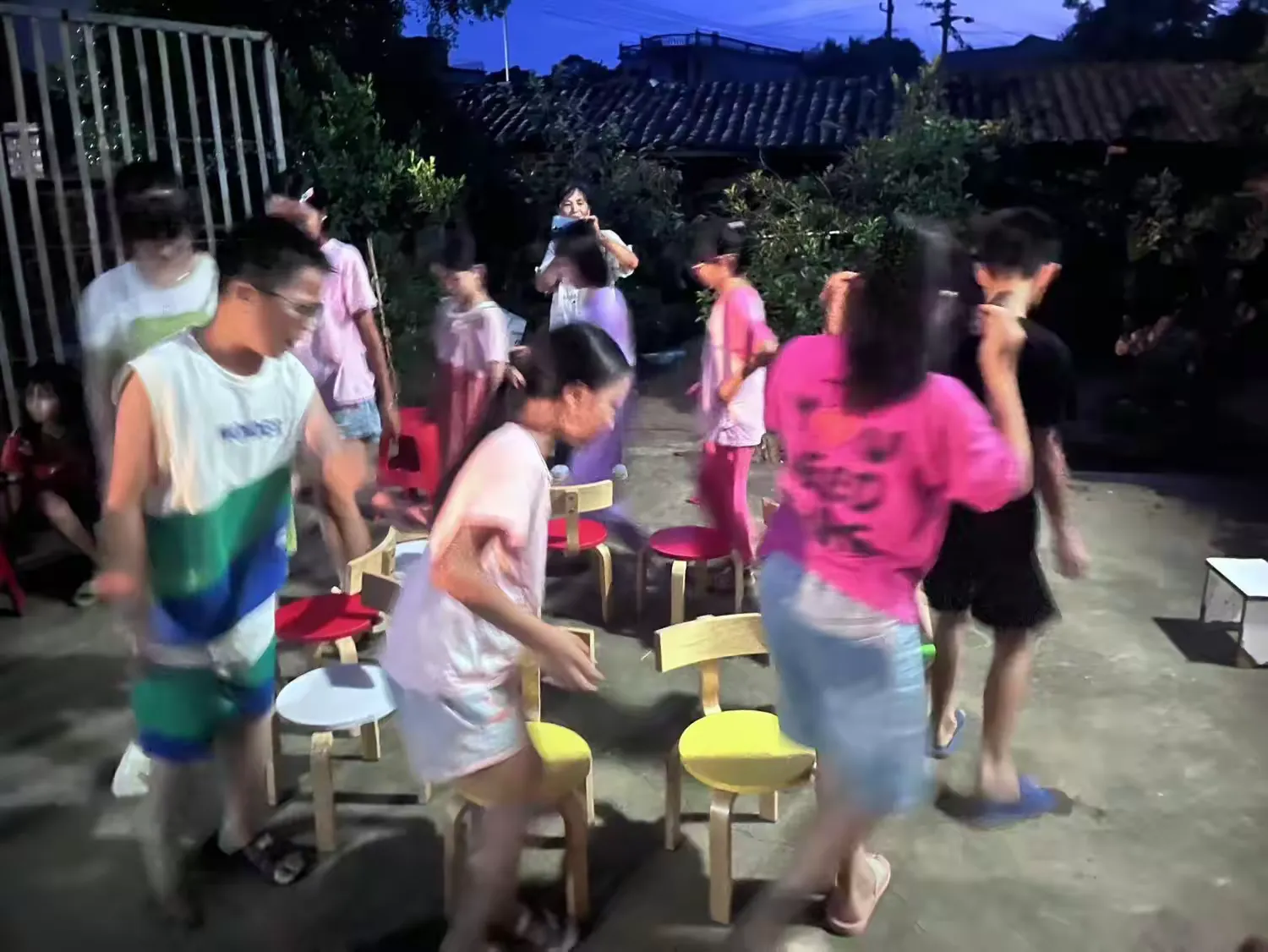 考虑到白天温度高、天气热,滨塘村阳光驿站特意将多项趣味游戏安排在晚上进行。抢凳子、叠纸杯、搭桥过河、蛋壳绘画……这些简单却充满挑战的游戏项目,不仅激发了孩子们的参与热情,还锻炼了他们的反应能力、协调能力和团队合作精神。夜晚的微风中,孩子们的欢声笑语响彻云霄,成为了这个夏天最动听的旋律。