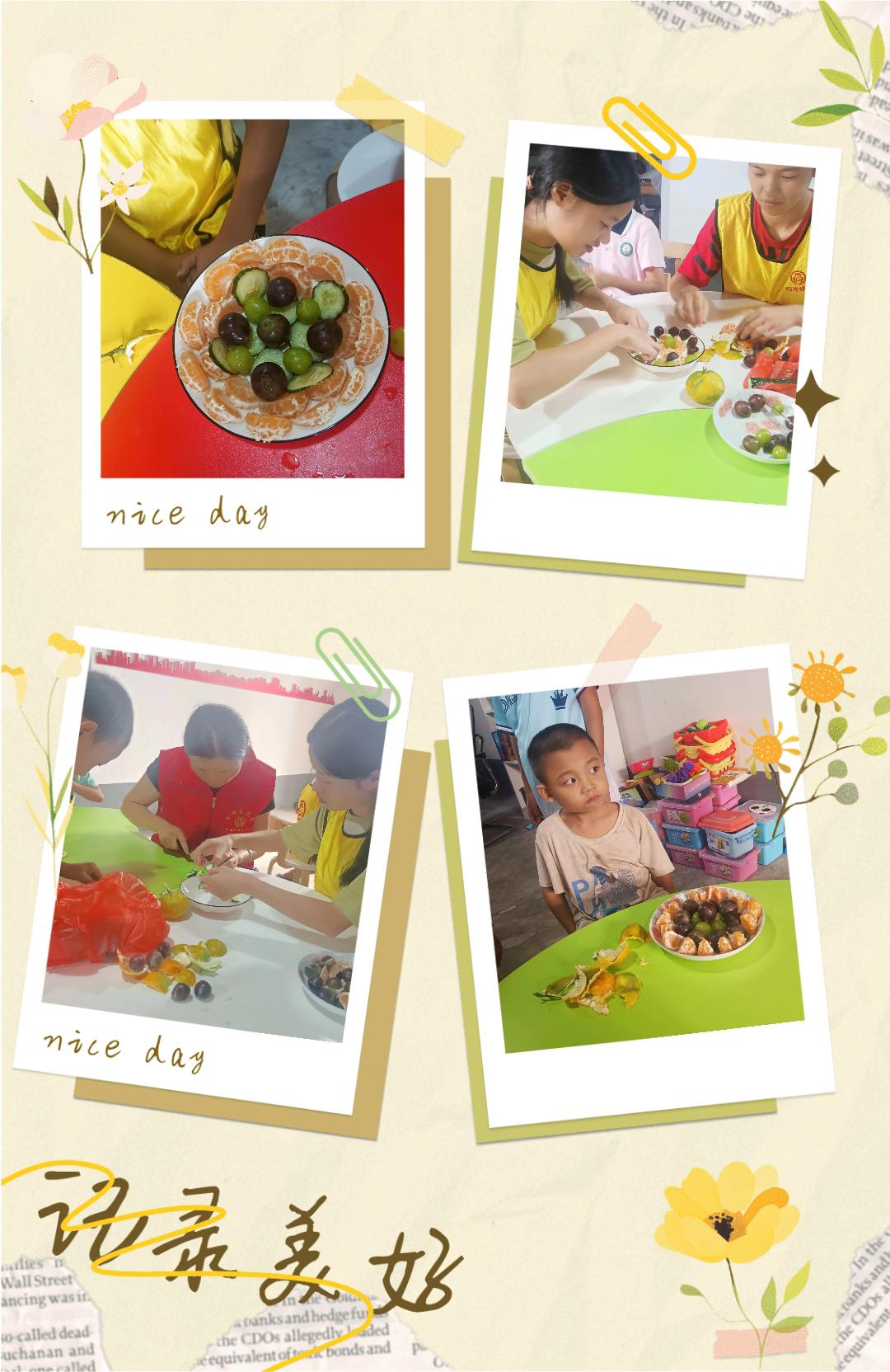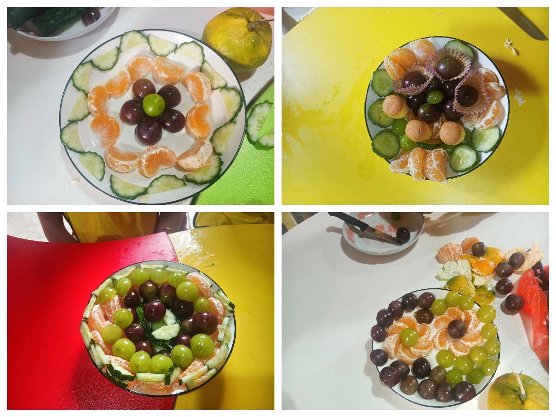 首先我们迎来了甜蜜温馨的水果拼拼乐环节。新鲜欲滴的水果在孩子们的巧手下,被赋予了新的生命。小朋友们直接创作出了一幅幅生动的夏日风景画。每一份作品都充满了创意与惊喜,让人不禁感叹于孩子们的无限想象力和对美好生活的热爱。品尝着自己亲手制作的水果拼盘,那份清甜与满足,正是夏天最美好的味道。