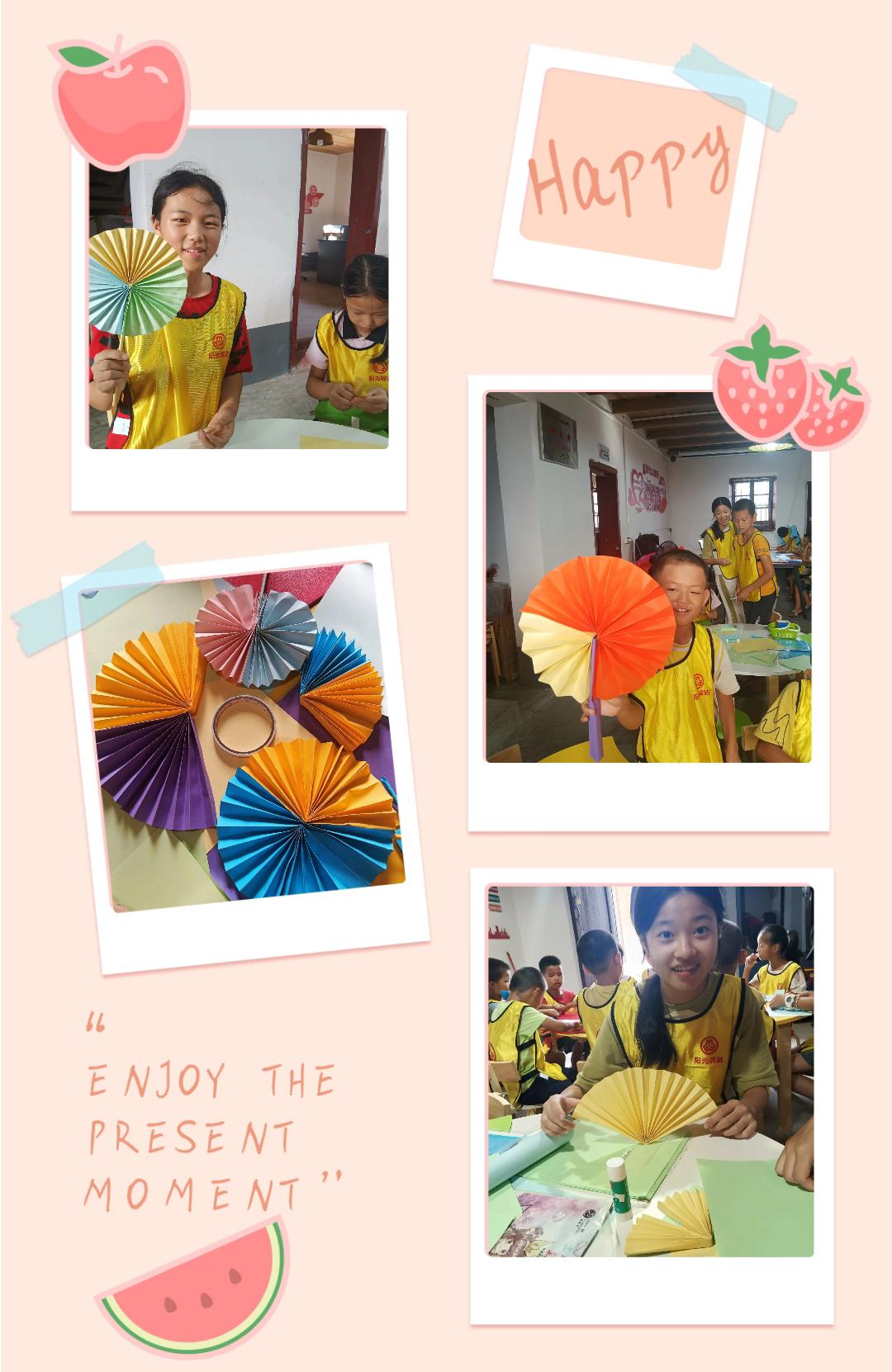 活动开始,志愿者给孩子们讲解蒲扇的来历,随后带着小朋友们用彩纸折出多彩扇子,每一把蒲扇都独一无二,不仅为炎炎夏日带来一丝丝凉意,更让孩子们在创作中感受到了色彩与艺术的魅力。手持自己绘制的蒲扇,孩子们的脸上洋溢着满足与自豪的笑容。