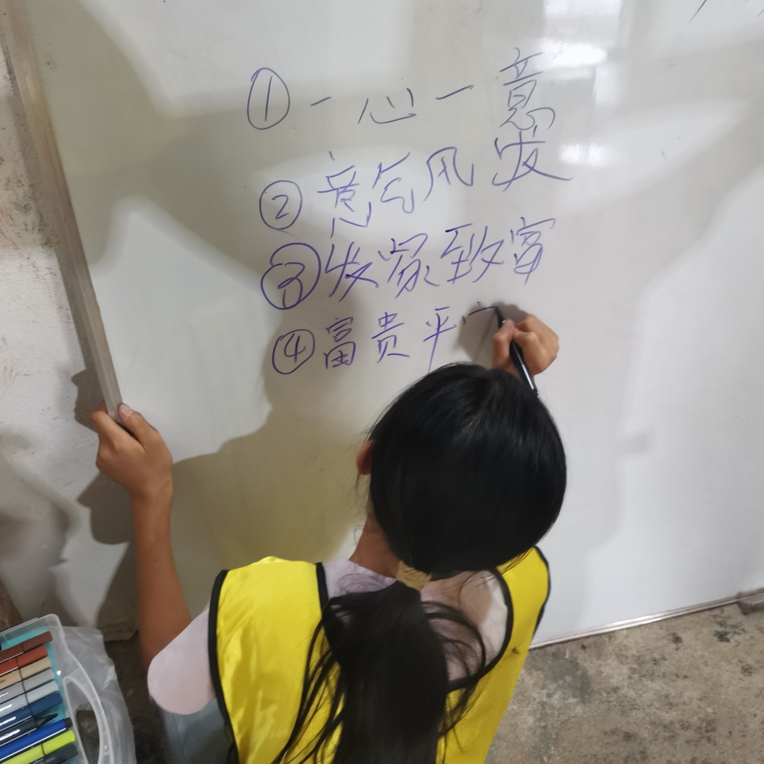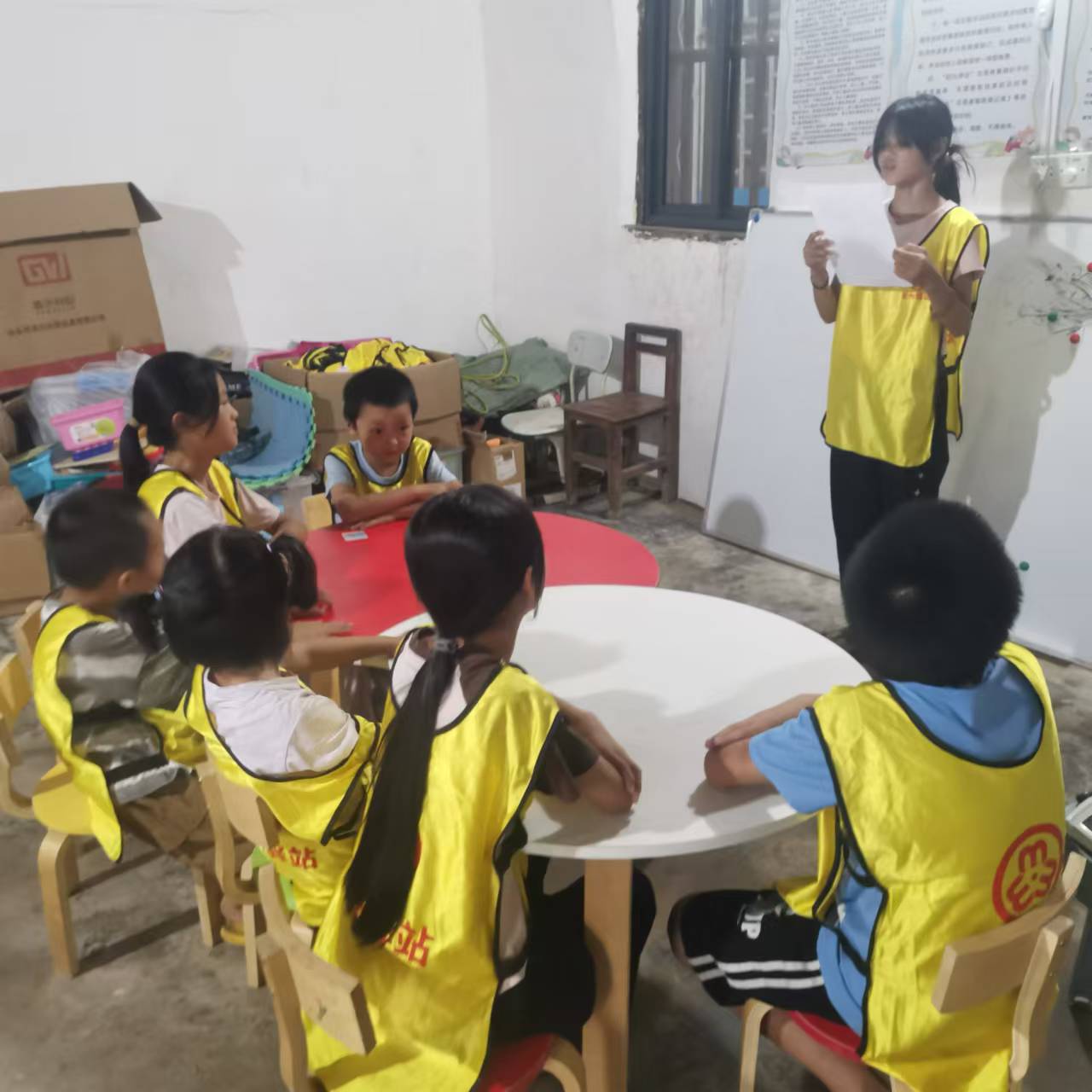 先由一个孩子带领全部孩子读防溺水六个不,再由大家相互背诵给对方听。