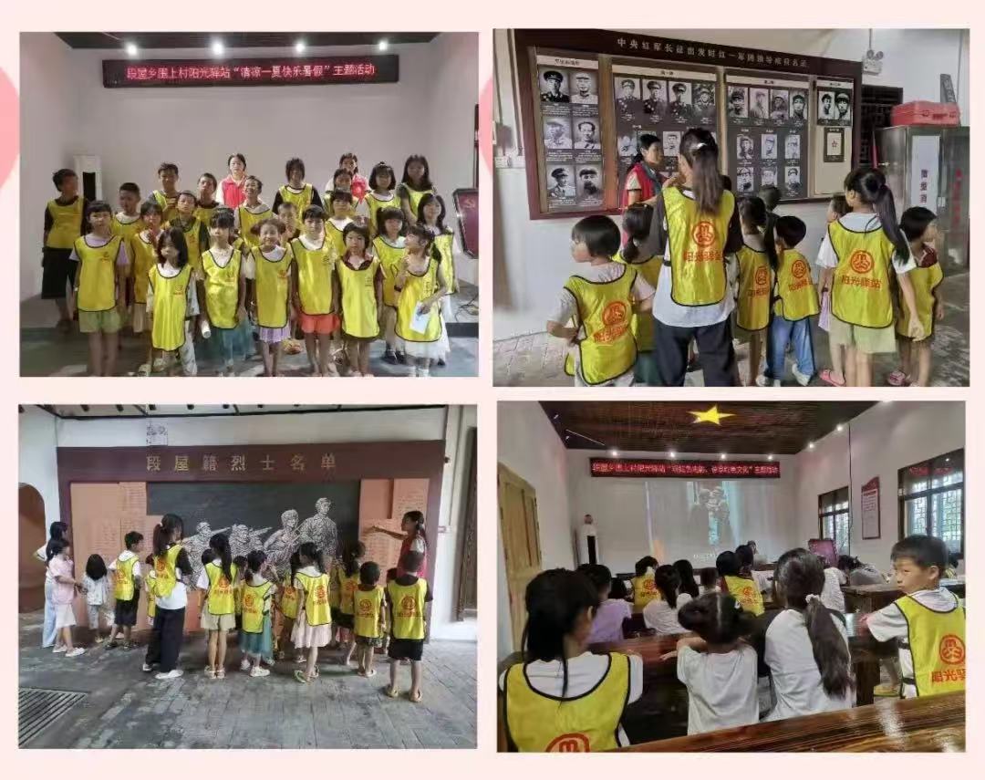 为缅怀革命先烈,传承革命精神,奋力走好新时代的长征路。2024年8月21段屋乡围上村阳光驿站在儿童即将开学之际重温红色记忆 感悟初心使命教育活动,参观学习,踏寻革命先进事迹,感受革命烈士精神。儿童通过参观革命旧址,观红色电影的方式,为更加直观的感受革命先辈们的丰功伟绩,学好文化知识,提高自身素质,培养全面能力,将先烈的英勇精神和优良传统发扬光大,深感今天幸福生活的来之不易。在即将开学新学期更加努力向上新的好成绩!
