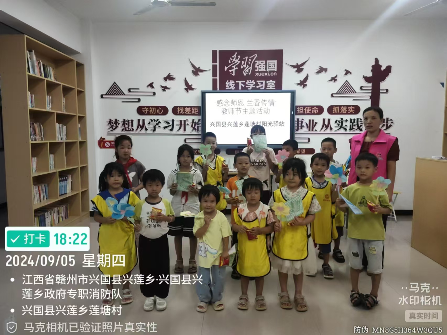 金秋送爽、硕果累累的季节里,我们迎来了又一个教师节。教师,是知识的传播者,是心灵的引路人,他们用无私的奉献和辛勤的汗水,浇灌着孩子们的成长之路。为了弘扬尊师重教的传统美德,增强学生对教师的敬爱之情,同时展现新时代儿童的风采与创意,9月5日兴国县兴莲乡莲塘村阳光驿站开展“感念师恩,兰香传情”主题活动。