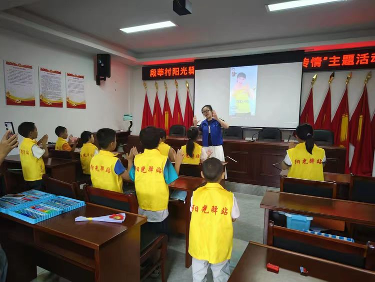 光驿站工作人员带领小朋友一起做手势舞《老师》进行热身。