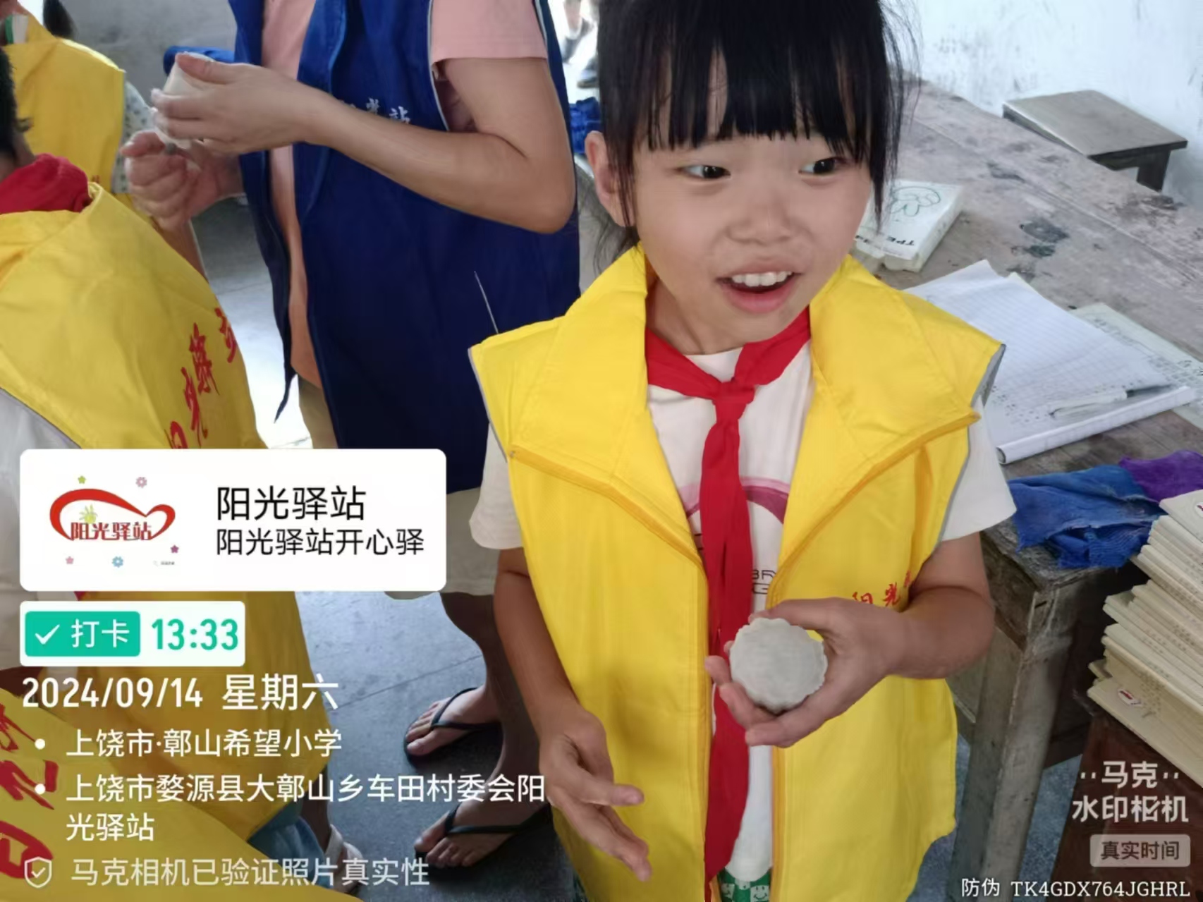 经过一番努力,当一盘盘承载着孩子们心血的月饼出炉时,整个驿站被幸福的气息包围。孩子们兴奋地一一向志愿者展示自己的作品,那不仅仅是一块块月饼,更是他们心中对家的思念、对未来的憧憬。随后,大家围坐一起,镜头定格下了这温馨而珍贵的瞬间,一张张笑脸,在镜头前绽放,成为了这个中秋最动人的风景。