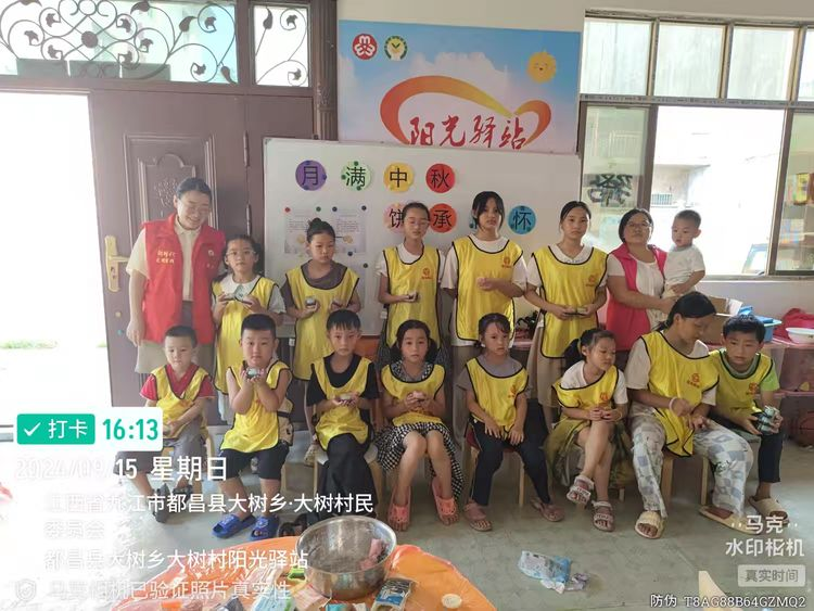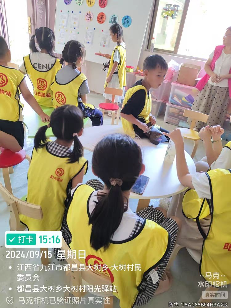 在中秋佳节来临之际,为了让孩子们更深入地了解中秋节的传统文化,感受节日的温馨与美好,同时培养孩子们的动手能力、创新思维和团队合作精神,大树乡大树村阳光驿站在9月15日下午特邀请到14位小朋友三位家长来开展“ 月满金秋 ‘饼’承情怀”中秋节主题活动。通过一系列丰富多彩的活动,让孩子们在参与中体验中秋传统文化的魅力,营造欢乐团圆的氛围。
