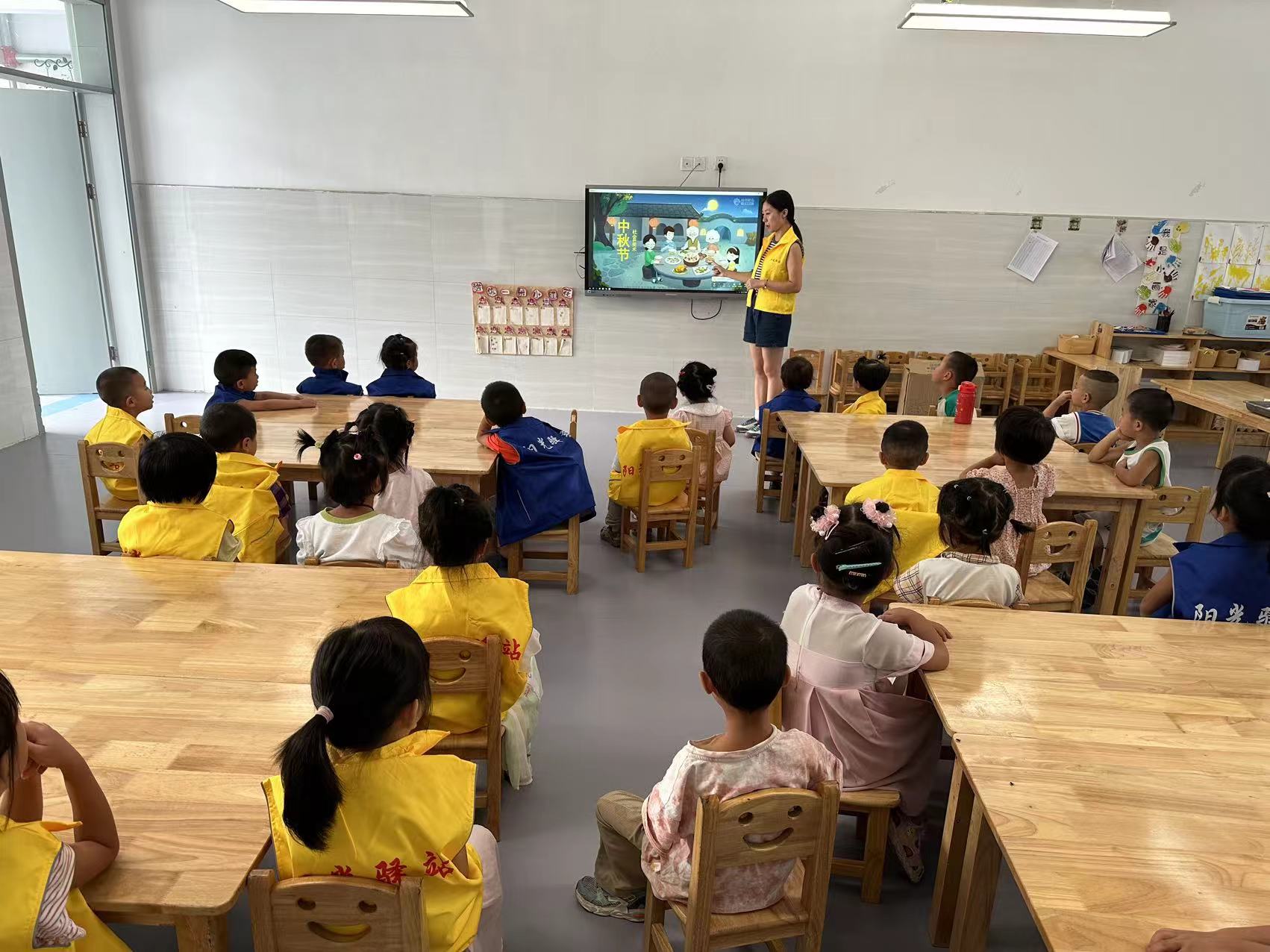 首先,志愿者工作人员向儿童介绍中秋节神话传说故事及传统习俗,在嫦娥奔月的故事中,孩子们对明月产生了无限遐想,更是在赏月,祭月,吃月饼等传统习俗中,对中华传统节日产生了浓厚的兴趣。