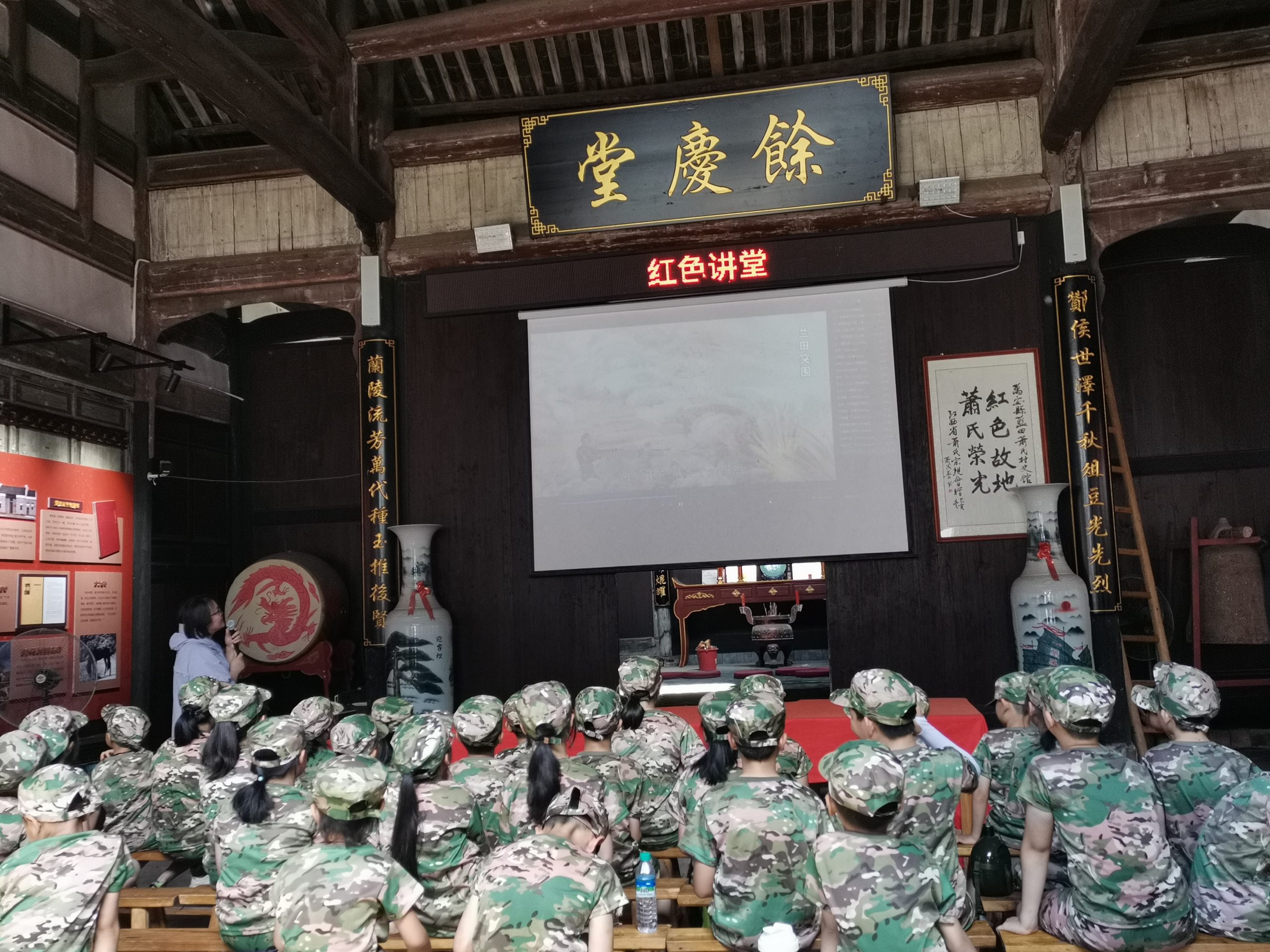 万安县妇女儿童活动中心阳光驿站的孩子们走进枧头镇兰田村,换上红军服,开启此次行程。到达红色名村入口处,孩子们就开始“长征”拉练,夏日炎炎,孩子们依旧兴致高昂,沉浸式体验“小红军”这个角色。活动中,在老师的口令下,孩子们进行分组游戏,共同思考小队名称和口号,开启一场热身小游戏;紧接着,孩子们开始穿越“艰难险阻”进行体能训练。