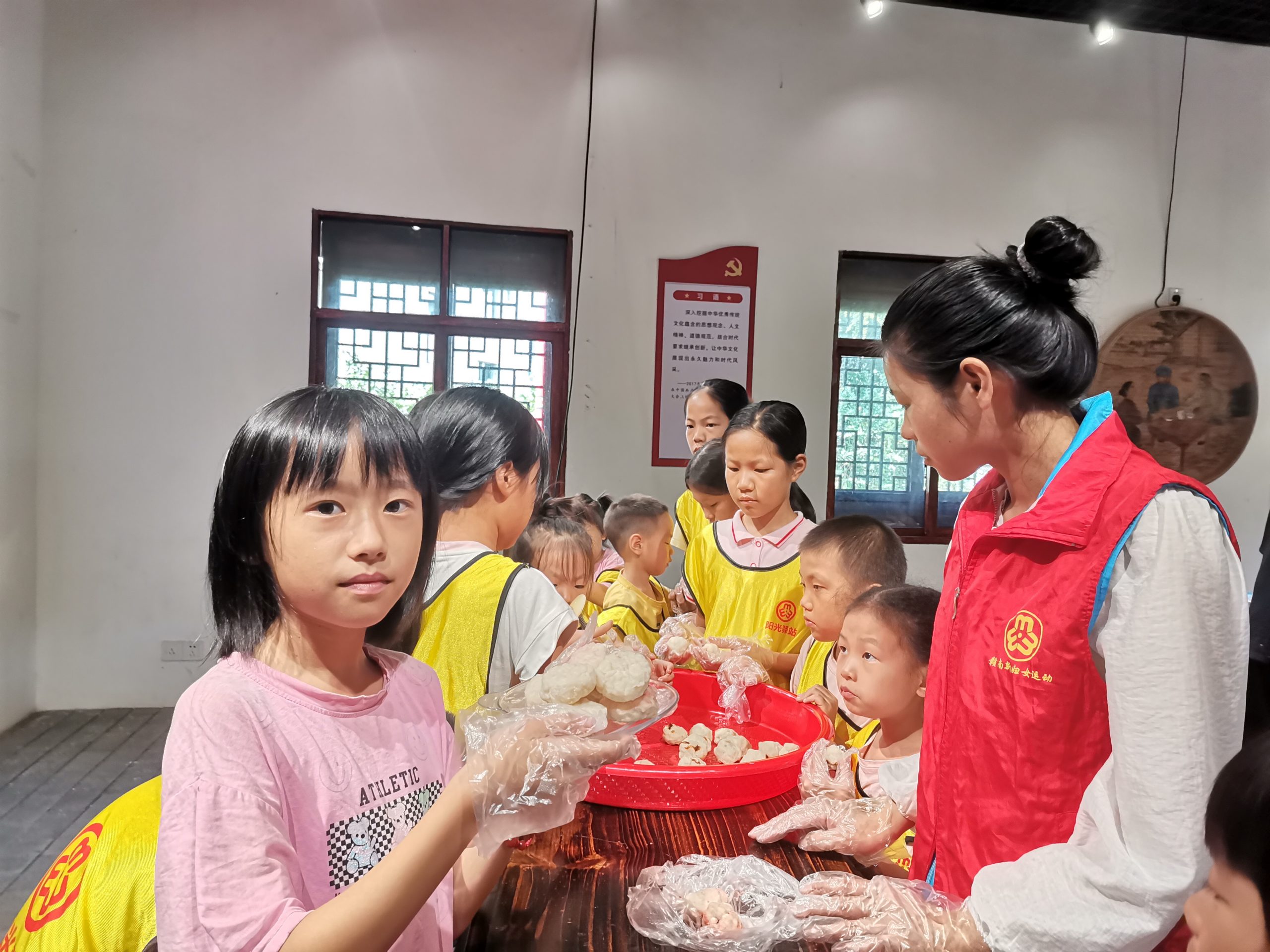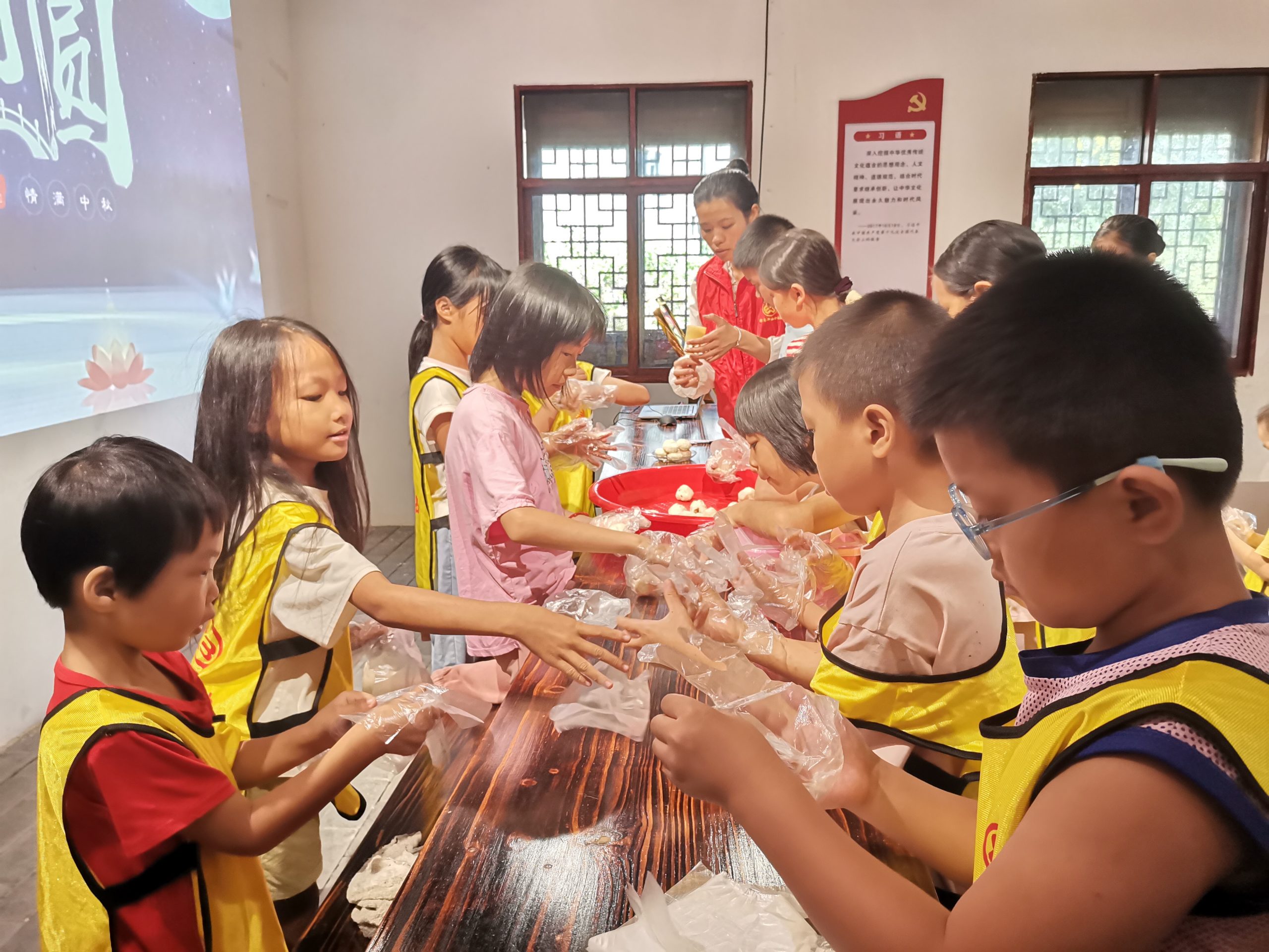 中秋节,又称月夕、秋节、仲秋节或团圆节,是中国传统节日之一,2024年9月15日段屋乡围上村阳光驿站开展“月满金秋 “饼”承情怀”中秋节主题活动。中秋节的习俗丰富多彩,其中最为人熟知的巾帼志愿者与孩子手工制作月饼,准备月饼,这是一种圆形的糕点,象征着团圆和完满。此外,赏月也是中秋节的重要活动,人们在月下欢聚,欣赏那一轮皎洁的明月,寄托着对家人的思念和对美好生活的向往。