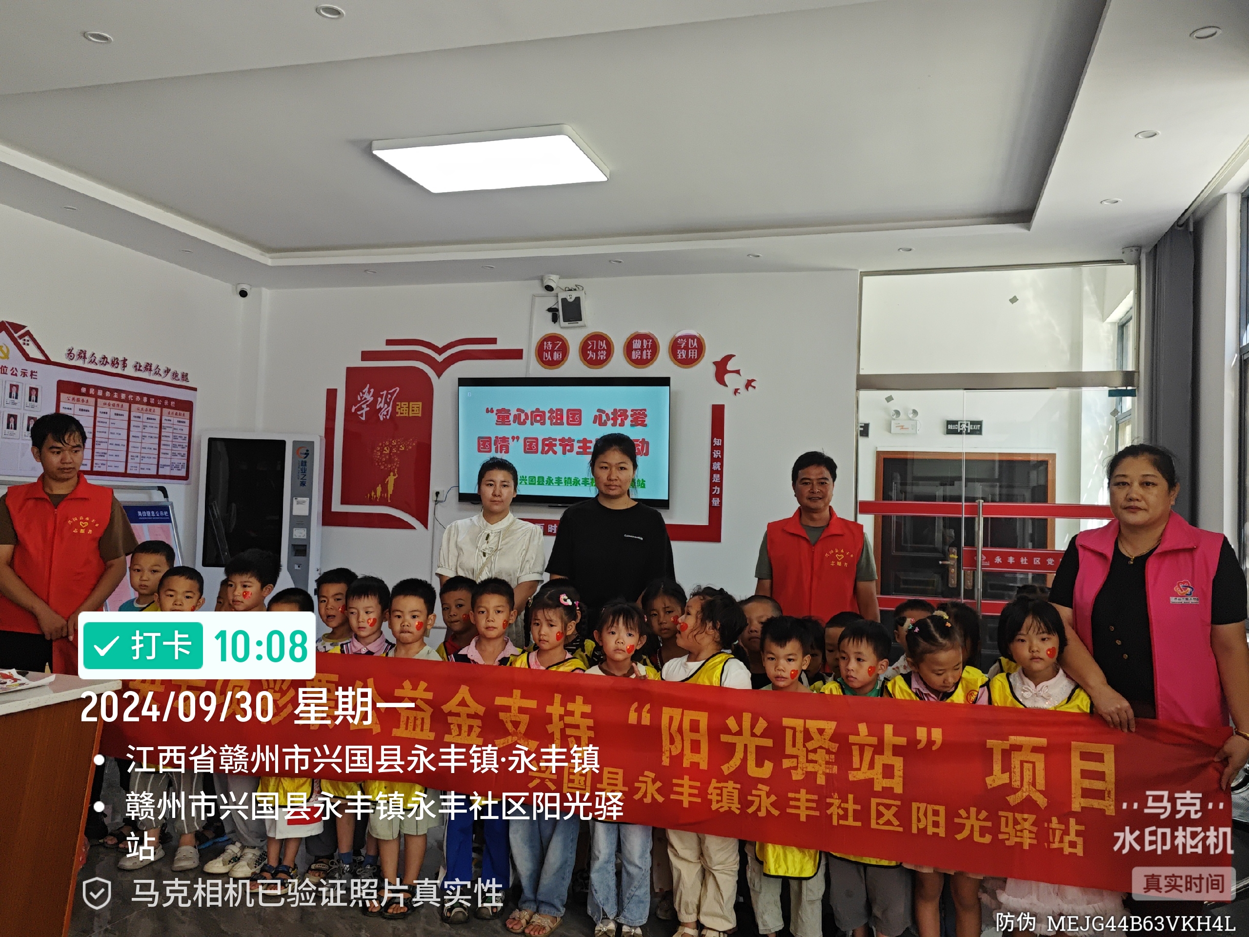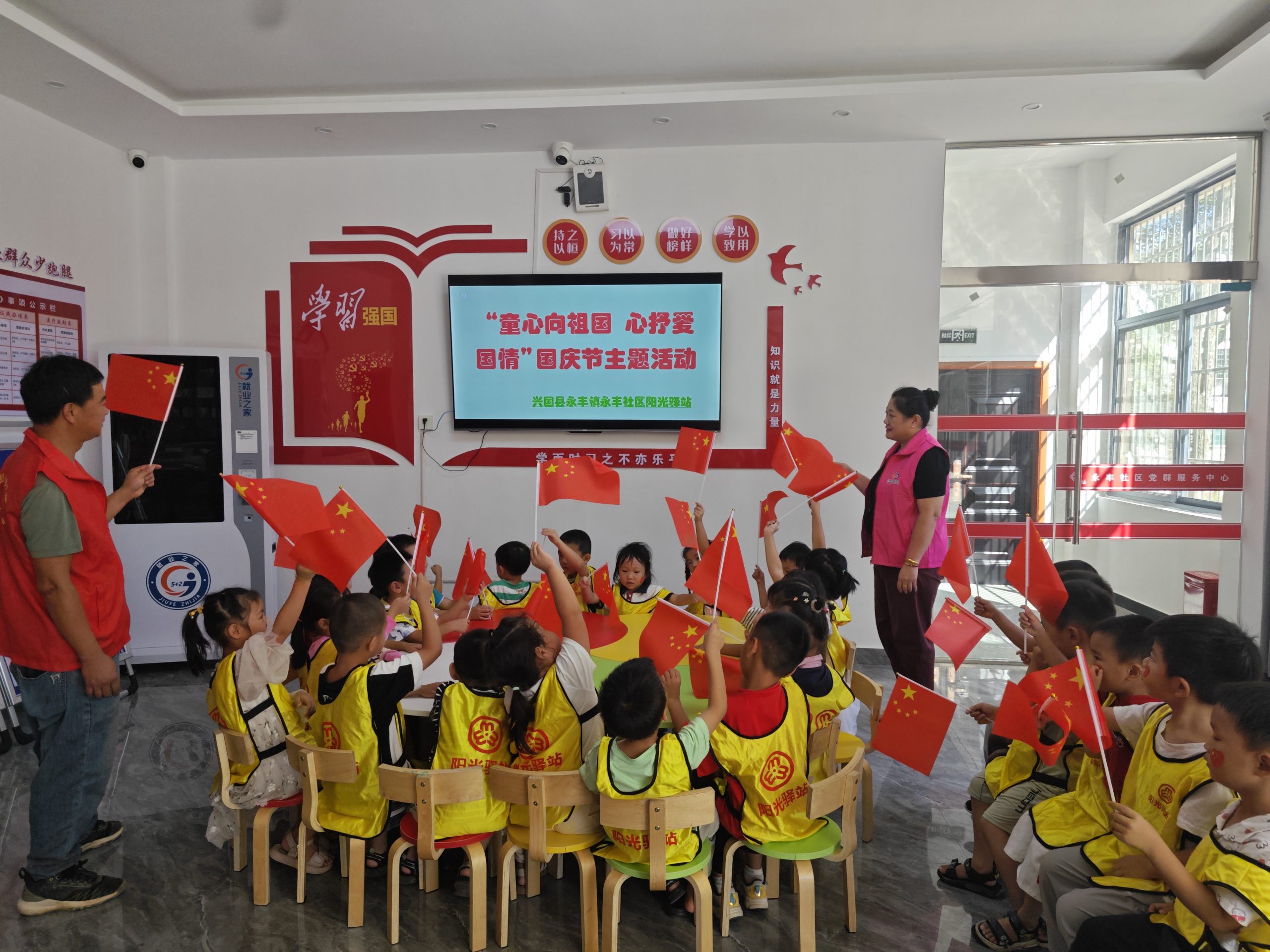金秋十月,迎来国庆,万众欢腾,神舟共庆。为热烈庆祝中华人民共和国成立75周年,为加强爱国主义教育, 激发儿童的爱国主义情怀,增强民族自豪感和爱国热情。 永丰社区阳光驿站开展“童心向祖国 心抒爱国情”主题活动。
