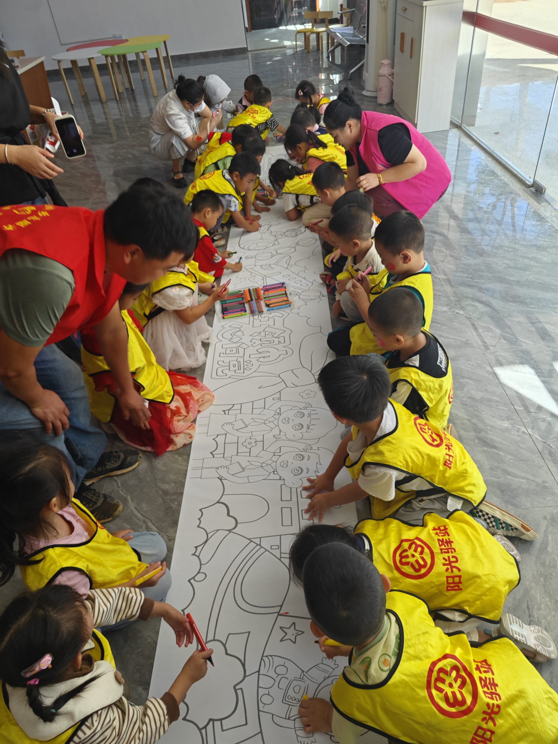 活动中,志愿者带领孩子们重回峥嵘岁月,一起感受祖国日新月异的变化和发展,一起为祖国的繁荣富强而骄傲自豪。随后孩子们用手中的画笔,灵巧的双手,用自己独特的方式表达着热爱祖国的心声。每一抹色彩都蕴藏着孩子们对祖国母亲满满的爱与祝福。近两个小时的现场创作,孩子们充分发挥想象力,用手中的画笔和富有想象力的色彩展现了自己心中祖国的历史文化、人文情怀和建设成就,画下了对祖国未来的美好憧憬。