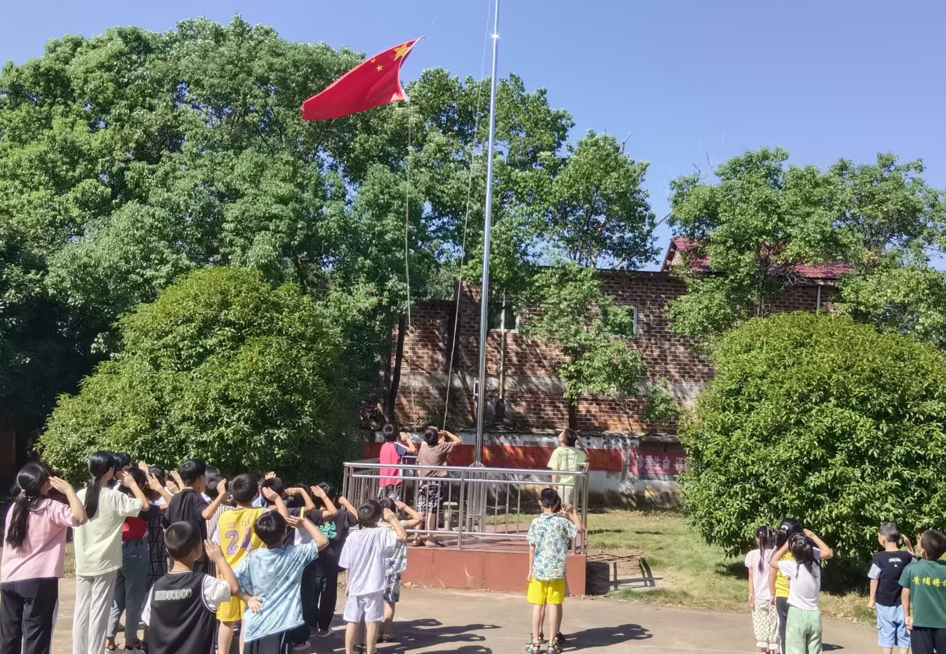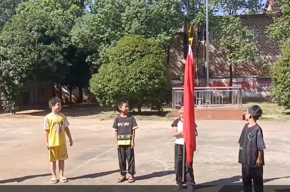 活动在一片庄严肃穆的氛围中拉开帷幕。随着雄壮的国歌声响起,鲜艳的五星红旗在全体人员的注视下冉冉升起。小朋友们神情专注,小脸蛋上洋溢着对祖国的无限热爱与崇高敬意。这一刻,他们的心灵与国旗同在,与祖国同频共振,共同表达对伟大祖国的深深祝福。
