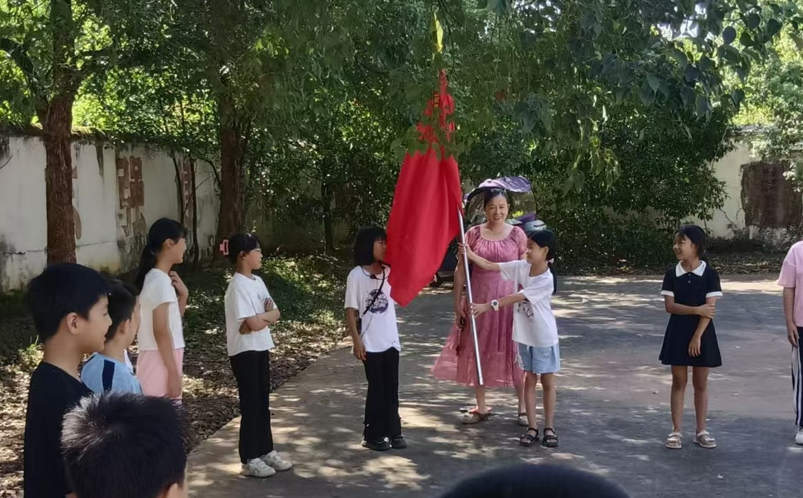 随后,一场别开生面的传红旗活动将现场气氛推向了高潮。孩子们手拉手围成一个大圈,红旗在孩子们手中欢快地传递着。每当红旗传到一位小朋友手中,他便要高高举起红旗,大声说出自己对祖国的祝福语:“祝愿祖国繁荣昌盛!”、“祖国妈妈,我爱您!”……一句句稚嫩却饱含深情的话语,如同清泉般滋润着在场每一个人的心田,让爱国的种子在孩子们心中生根发芽。
