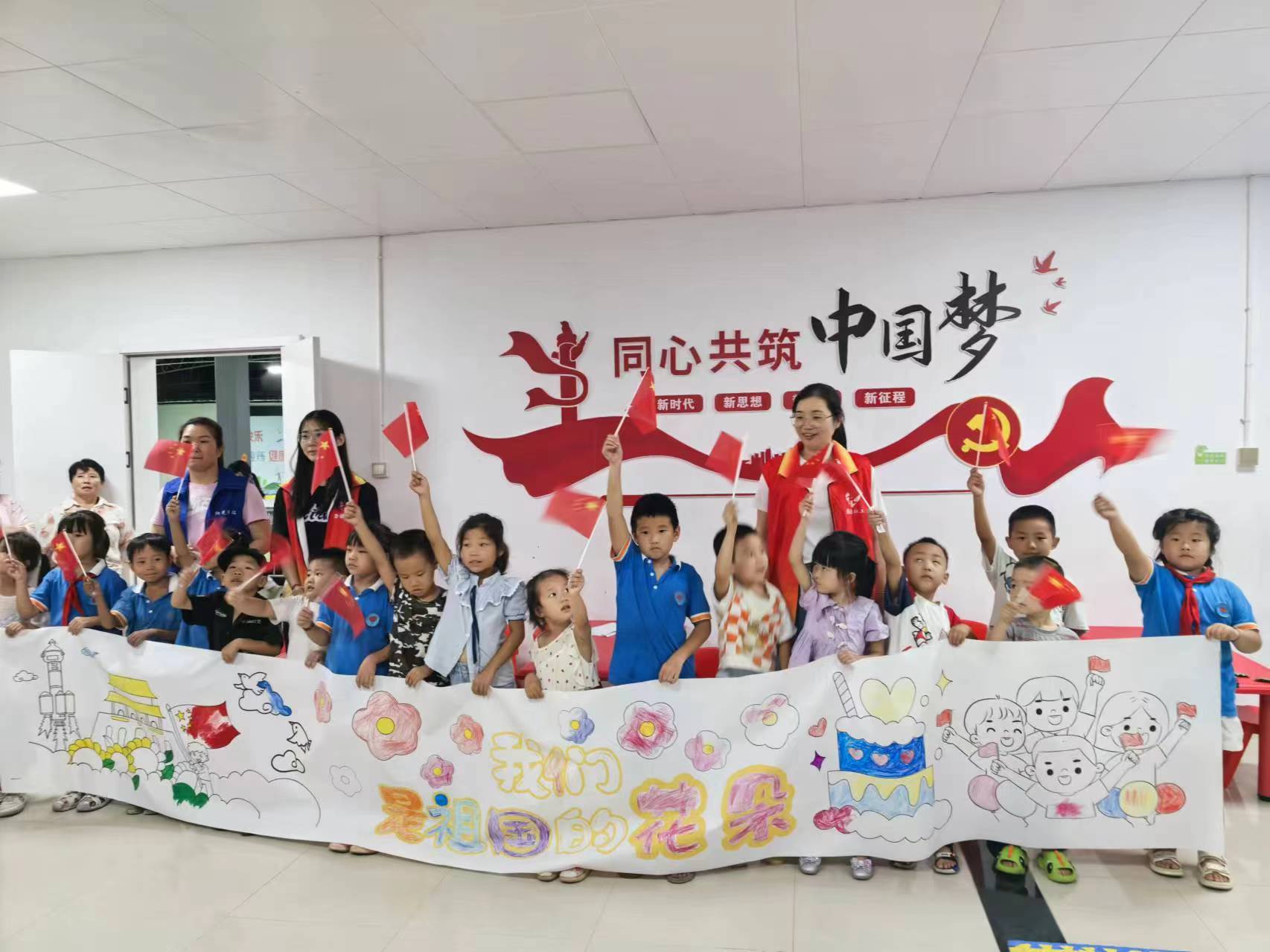 在金秋送爽、丹桂飘香的季节里,我们迎来了伟大祖国的生日。为了庆祝这一庄严而神圣的节日,车田村阳光驿站的志愿者们携手村里的留守儿童,共同举办了一场别开生面的“童心绘国庆,共筑中国梦”主题活动。