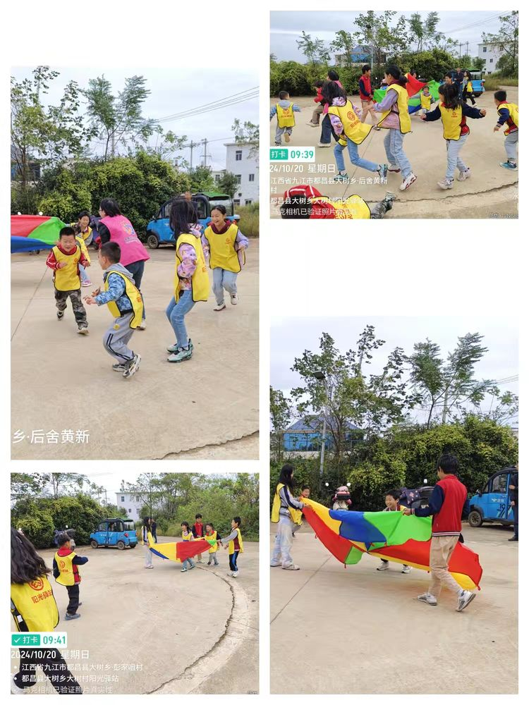 秋高气爽,随着季节的变化为了让孩子感受秋天的美丽和丰富,增强对自然环境的认识和尊重。提高团队协作能力和解决问题的能力。都昌县大树乡大树村阳光驿站在10月20日上午特邀请14位小朋友,三位家长来到后舍黄自然村娱乐广场。通过户外活动,来促进孩子们的身心健康,增加游戏的乐趣。