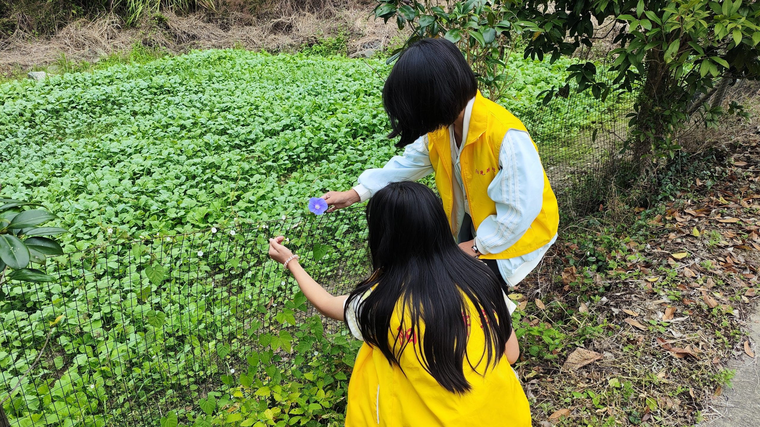 工作人员带领儿童来到户外,引导儿童观察自然,发现大自然的美。秋天叶子的样子,大树的高度,泥土的味道,花草的颜色,这些都是大自然独有的美。再请孩子们描述眼前看到的风景。