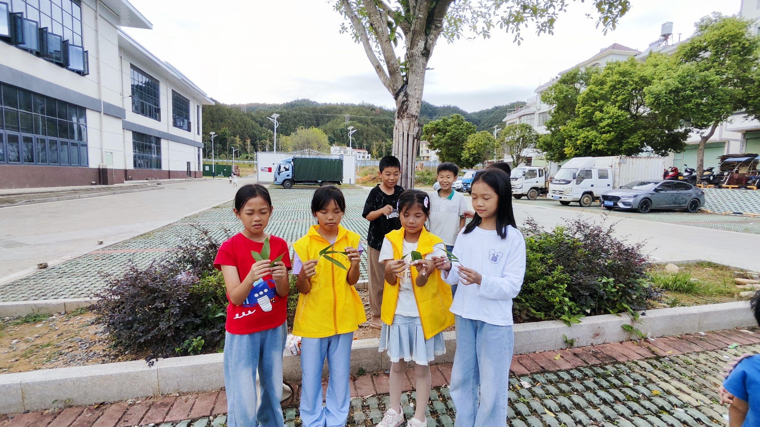 儿童闭上眼睛,双手背与身后。工作人员给每一位孩子发放一片树叶在手里,请儿童逐一描述自己手中的叶子,如它是光滑的,周边有刺,是柔软的,有很深的叶脉等等。描述后请孩子睁开眼睛,通过其它人描述的信息去寻找和自己手中叶子相同的人,看看是否正确。