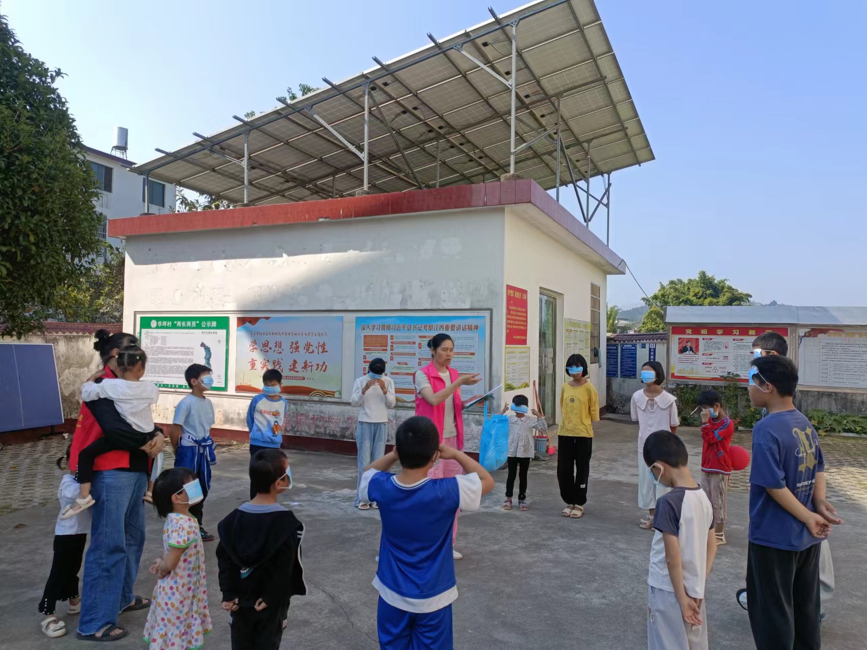 工作人员组织儿童围成圈,儿童蒙住眼睛,双手背