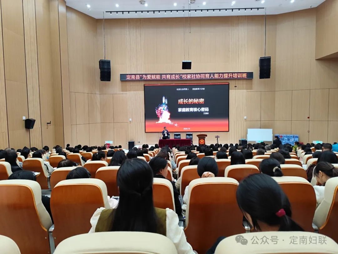 为深入学习贯彻习近平总书记关于注重家庭家教家风建设的重要论述和教育工作重要讲话精神,推进定南县全国学校家庭社会协同育人实验区建设,推动《定南县健全学校家庭社会协同育人机制 推进家庭教育高质量发展的实施方案》(定改字〔2024〕3 号)落实见效,10月24日—26日,定南县妇联、县教体局联合举办定南县校家社协同育人能力提升培训活动,邀请江西省家庭教育学会理事万浪标进行主讲。