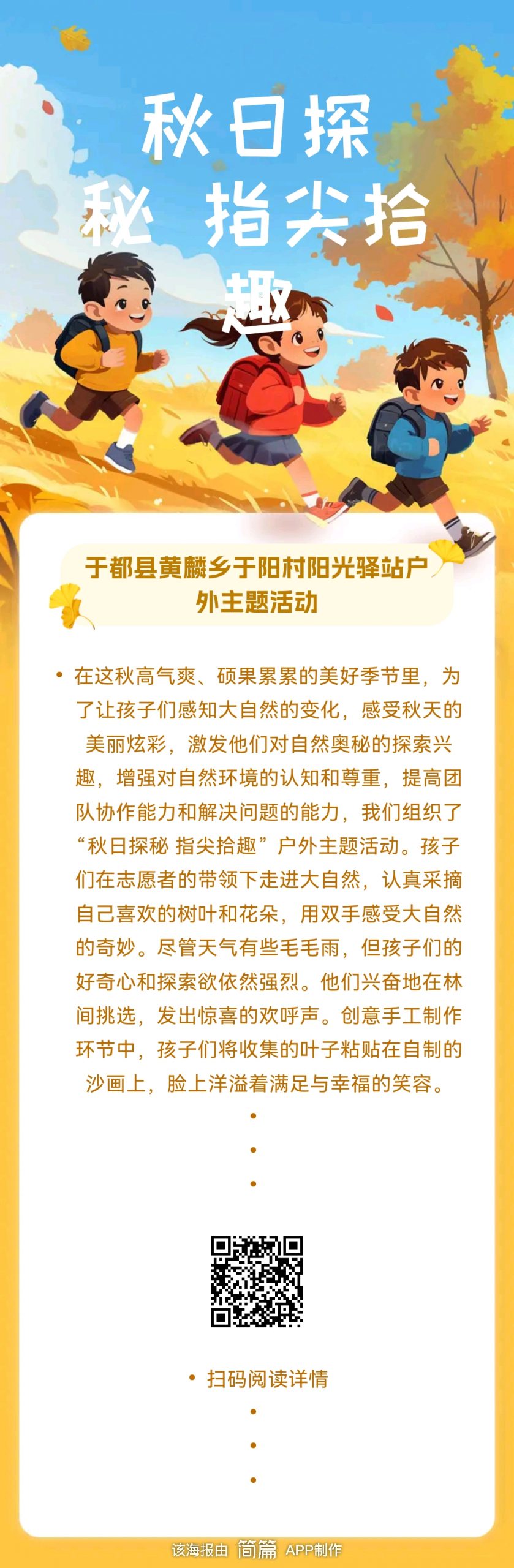 于都县黄麟乡于阳村阳光驿站开展“秋日探秘 指尖拾趣” 户外主题活动