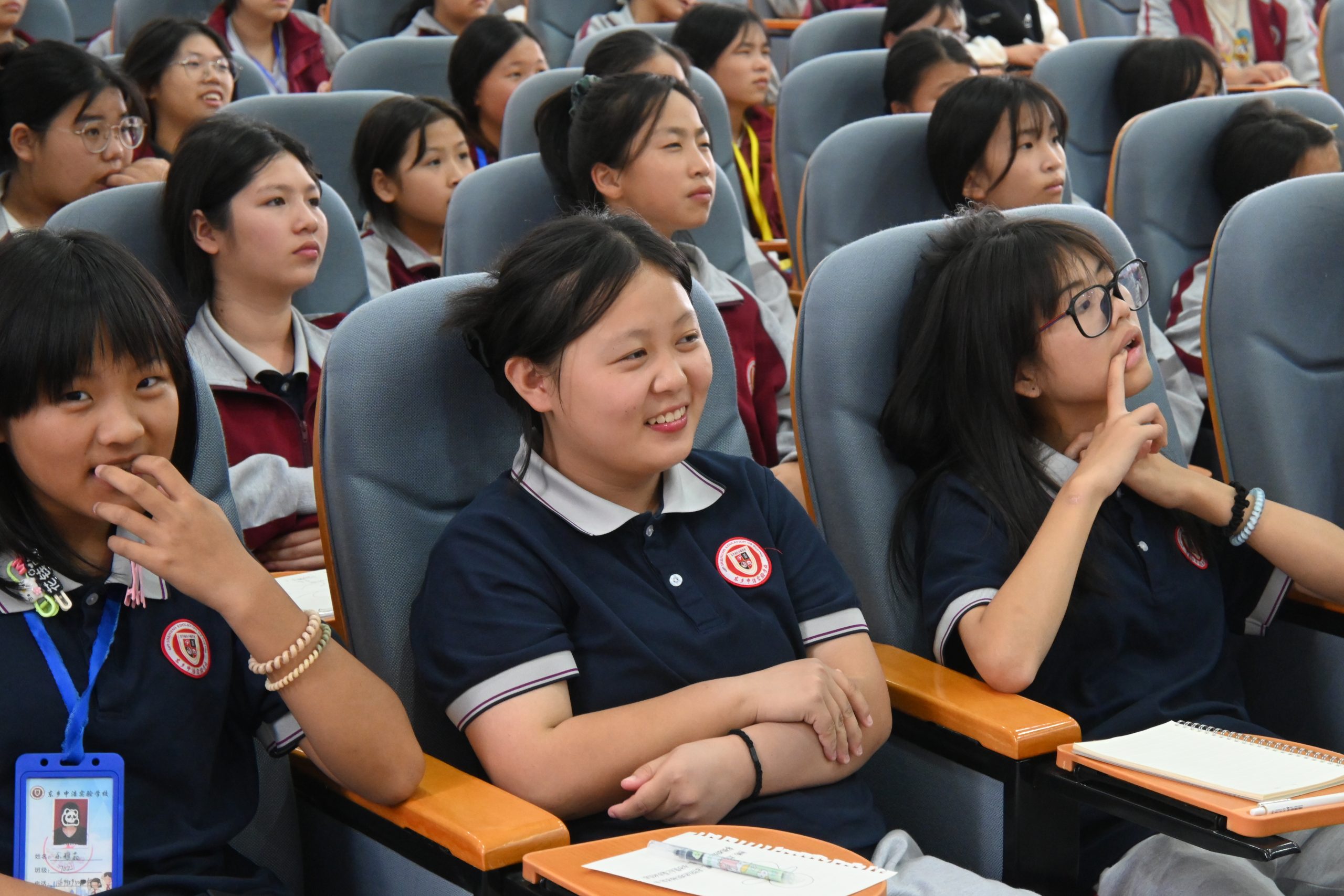 讲座一开始,江西省家庭教育学会讲师郭珊老师通过播放一段科普视频,向女童们揭示了青春期的神秘面纱,让她们对即将到来或已经到来的身体变化有了初步的认知。随后,郭老师借助教具模型,通过提问和邀请女童上台示范的方式,深入浅出地讲述了青春期生理变化,包括胸部发育和生理期等,郭老师还特别强调了如何根据身体的变化挑选适合自己的内衣,以及如何正确使用卫生巾。她鼓励女童们要正视并接纳自己身体的变化,用积极的心态去调整自己,去适应这一成长的必然过程。