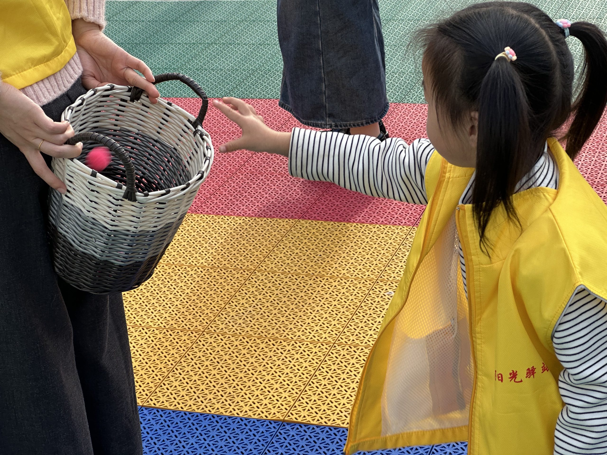 在“投接彩球”环节中,小朋友们注意力集中,认真投接,紧密配合,传递着爱与信任,家长朋友们耐心指导,展现了无尽的耐心与鼓励。他们的身影成为了赛场上最亮丽的风景线,赢得了在场所有人的掌声与喝彩。