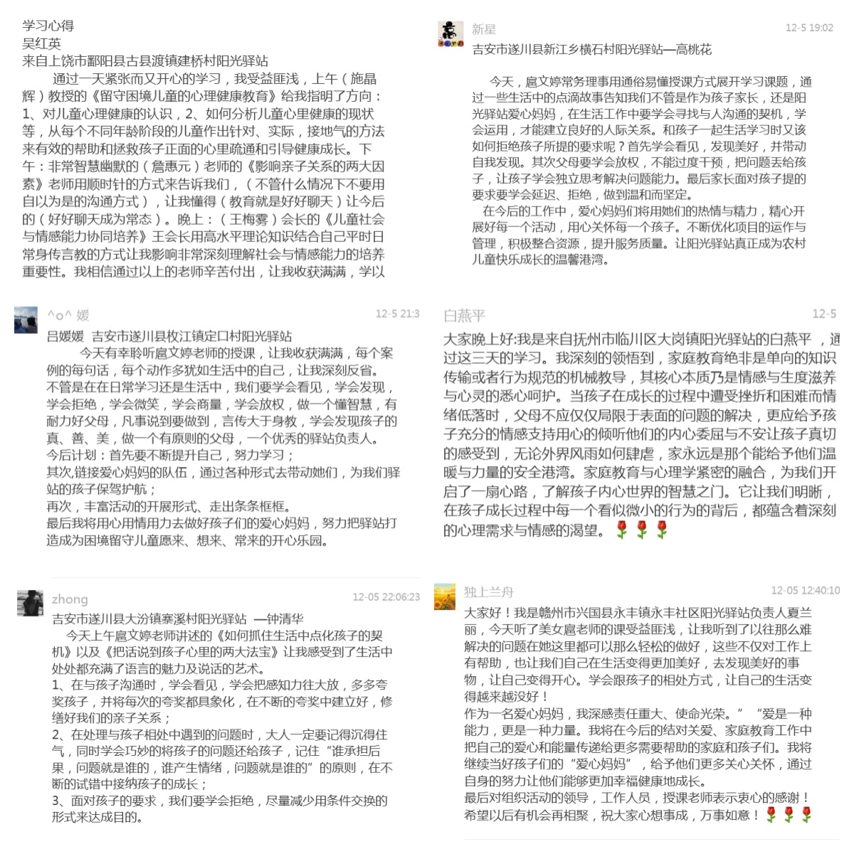 为深入贯彻习近平总书记关于妇女儿童工作、关于注重家庭家教家风建设的重要论述,扎实做好留守儿童关爱服务工作,进一步加强“阳光驿站”建设,12月2日至5日,江西省“阳光驿站”项目第四期培训班在南昌举行,来自全省134个“阳光驿站”的专职志愿者参加培训。