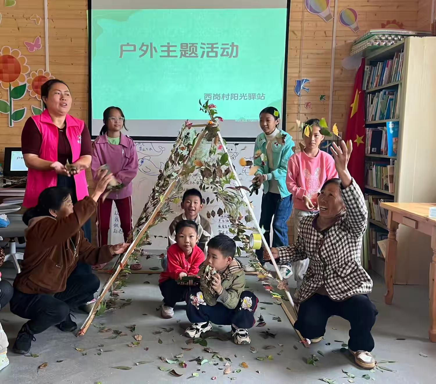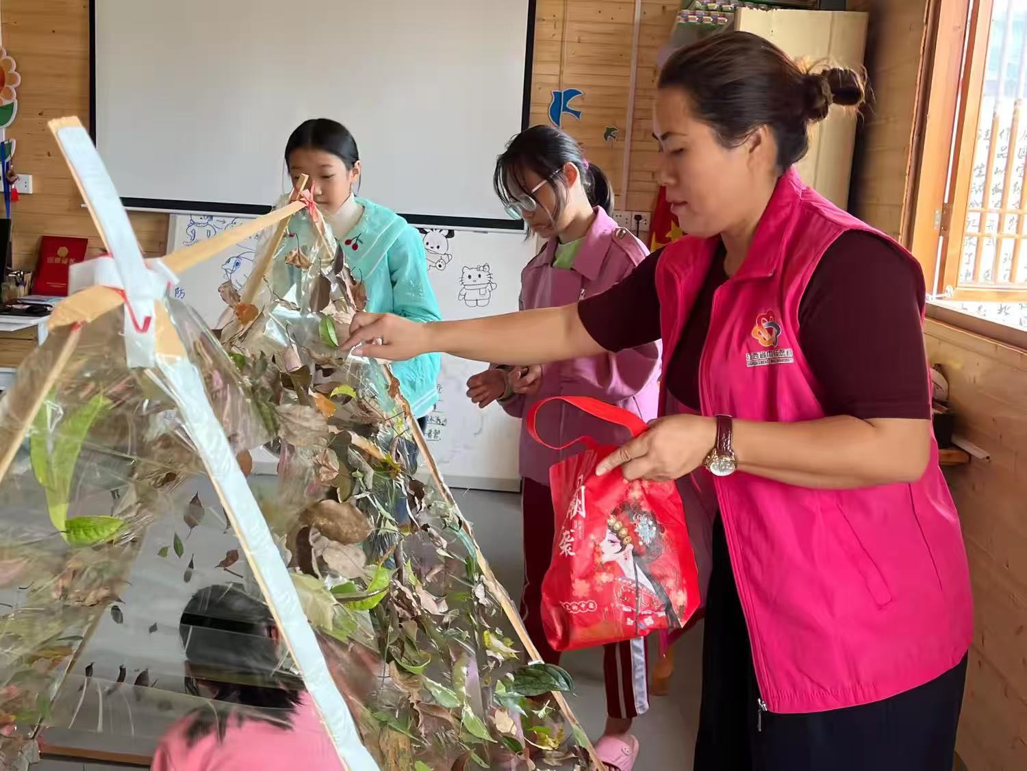 在阳光驿站教室内,志愿者们耐心地指导孩子们进行手工艺制作。孩子们在志愿者的引导下,利用手中的叶子,创作出一件精美的手工艺品。这些活动不仅丰富了孩子们的知识,更让他们在实践中感受到了学习的乐趣。