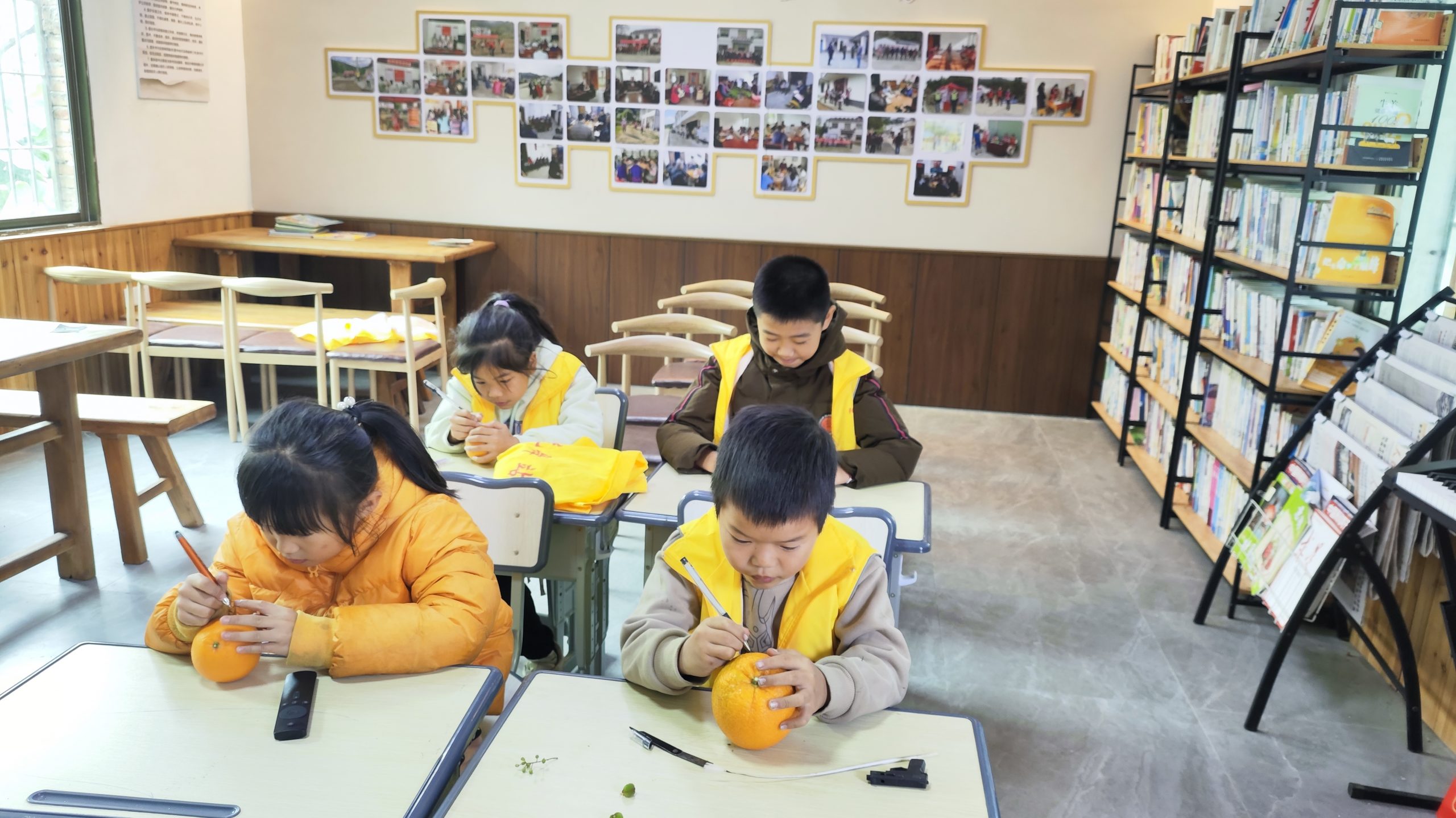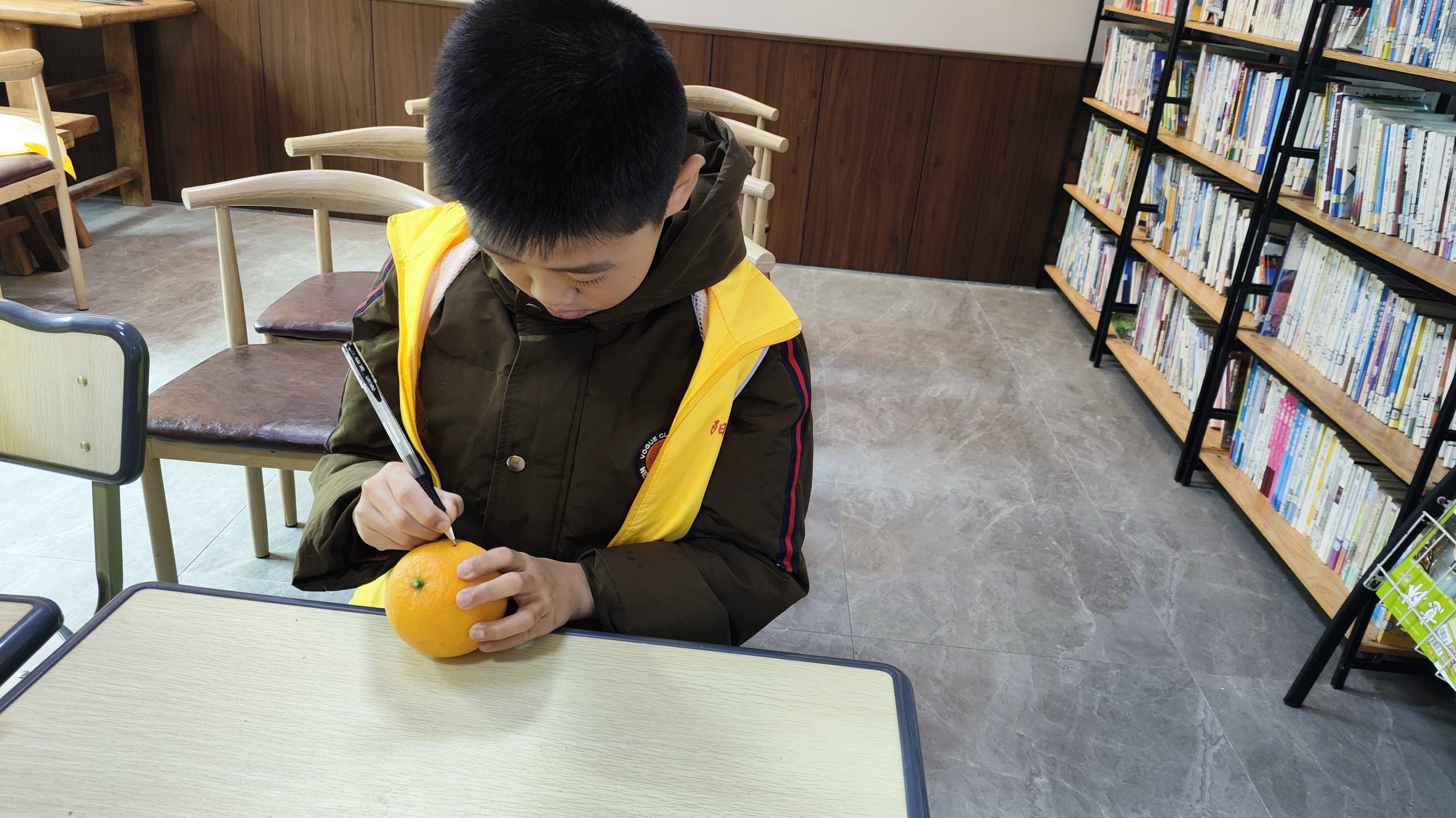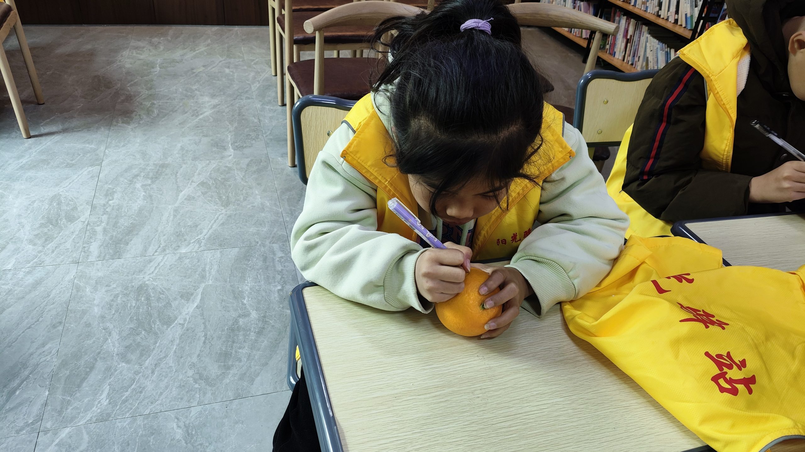 孩子们将脐橙带回阳光驿站后,根据自己的创意DIY手工艺品,一颗颗好看的橙子在他们手上展现开来。