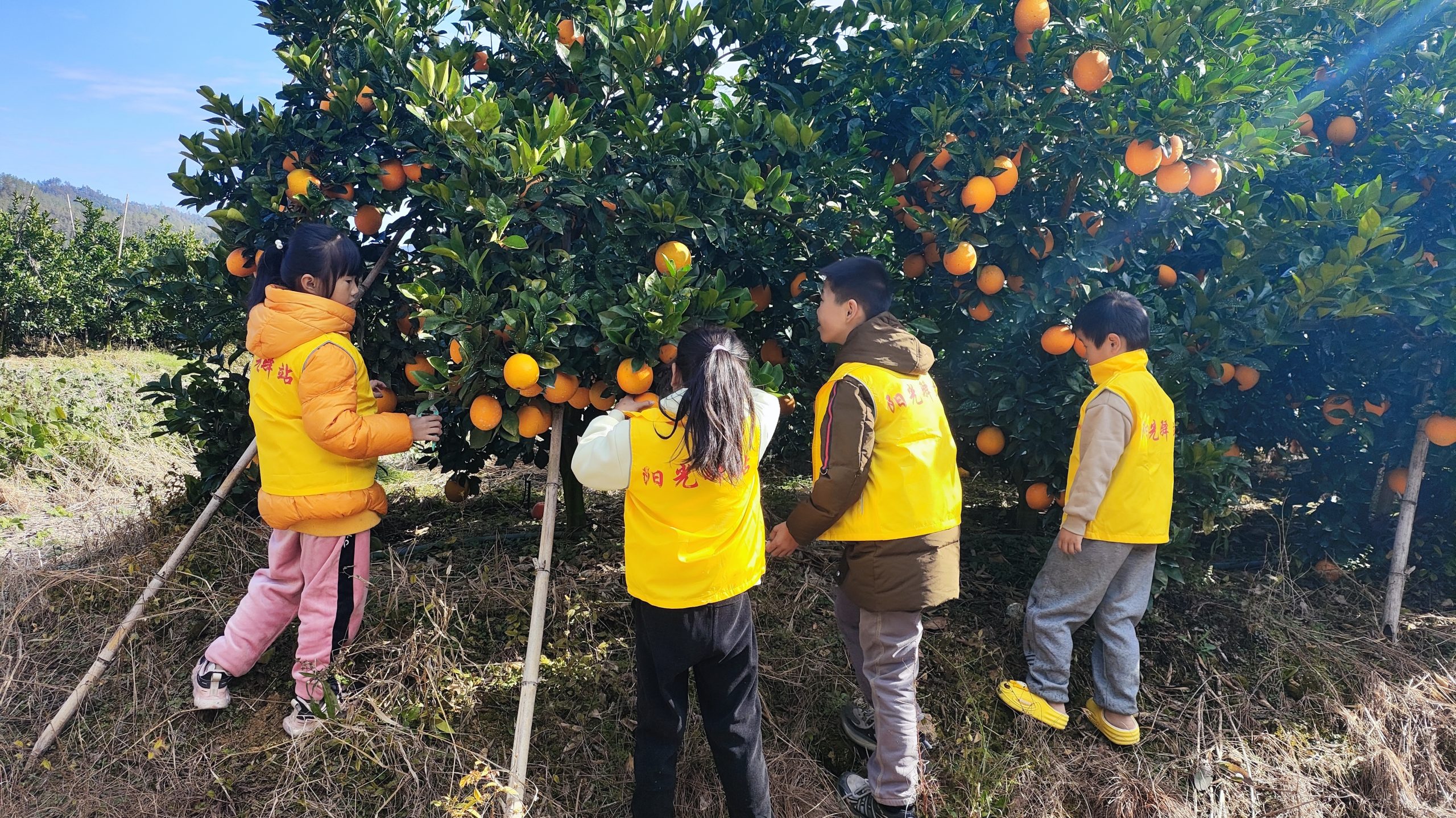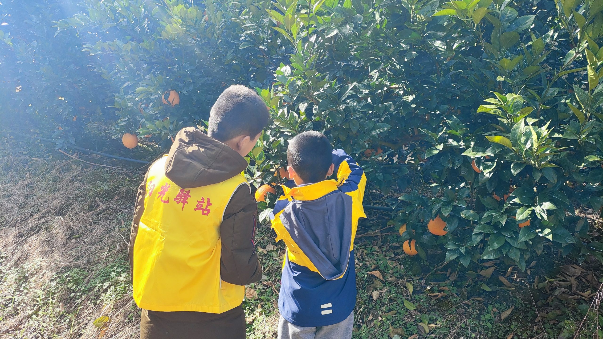 最后,志愿者为孩子们送上纪念品和脐橙,并和他们合影留念。