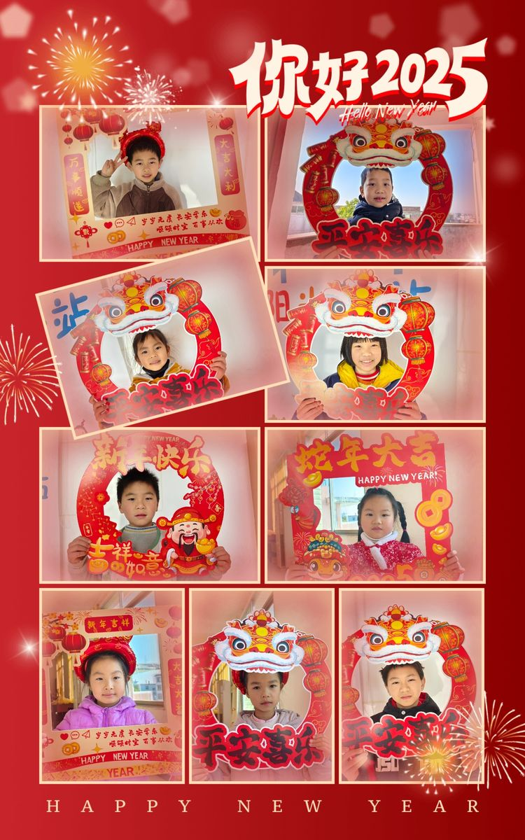 孩子们用创意十足的方式迎接新年的到来。他们手举着不同的新年相框,彼此之间传递着对新一年的美好祝福。这些照片不仅记录了孩子们的喜悦瞬间,也展现了他们对未来充满希望与期待的心情。