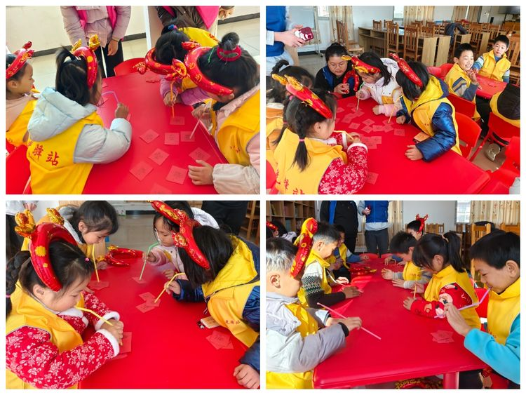 小朋友自由组队,开始“吸福气”游戏。志愿者巡回指导,对成功“吸”到最多福字的小朋友及时发放小奖励,鼓励大家积极参与,活动中播放欢快的新年音乐。