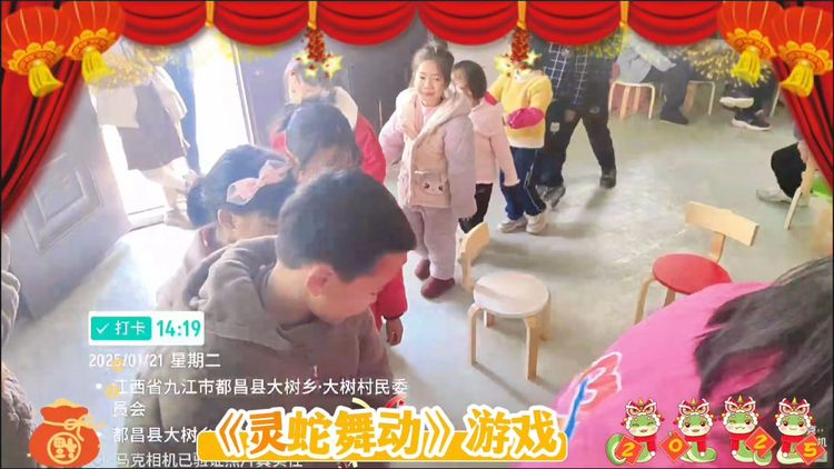 春节,是中国人心中最隆重、最热闹的传统节日。它承载着人们对新一年的美好祈愿,是阖家团圆、欢聚一堂的时刻。辞旧迎新,为迎接新春佳节!给孩子们提供一个展示才艺和增进交流与互动平台,营造积极向上,轻松愉悦的节日气氛。让孩子们愉悦心情,并对未来美好学习生活充满憧憬。都昌县大树乡大树村阳光驿站在2025年1月21日下午特邀请20位小朋友来阳光驿站举行“灵蛇献瑞 巳巳如意”的主题活动!
