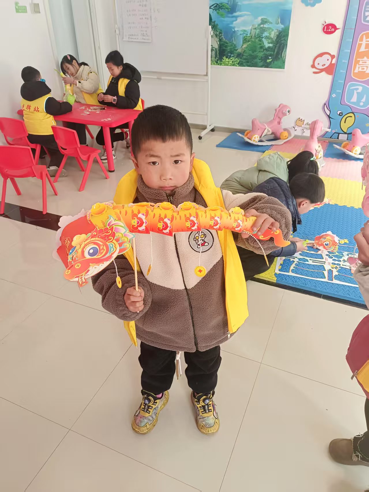 首先进行的是剪纸拼蛇环节。志愿者们准备了丰富的剪纸材料,引导孩子们发挥想象力,用灵巧的双手剪出各种形状的蛇形图案,并尝试将它们拼合在一起。孩子们在家长的陪伴下,一边动手实践,一边交流心得,现场充满了欢声笑语。
