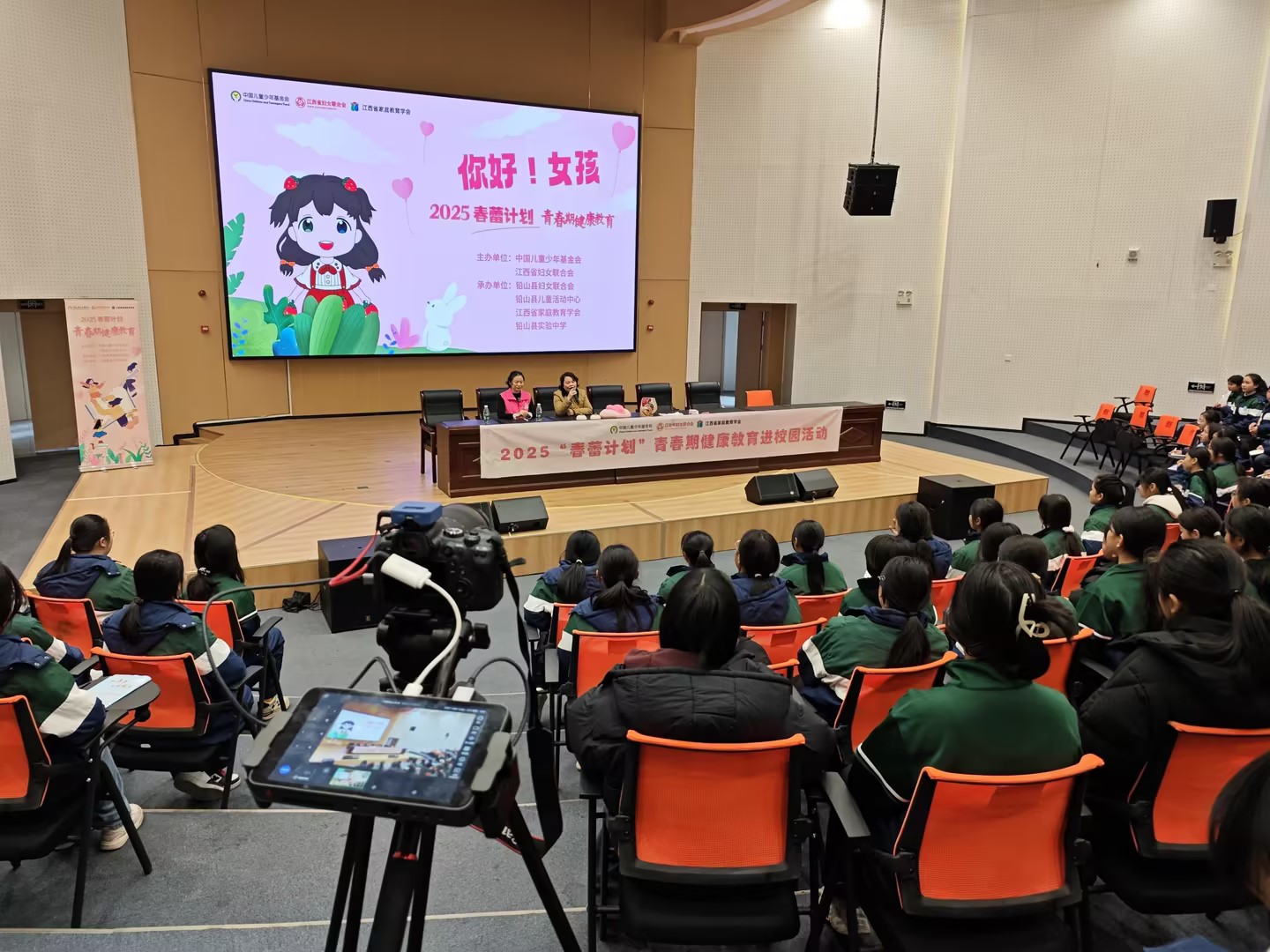 3月6日, 由中国儿童少年基金会、江西省妇女联合会主办,铅山县妇女联合会、铅山县儿童活动中心、江西省家庭教育学会承办的2025“春蕾计划”青春期健康教育进校园活动在铅山县实验中学正式启动。此次活动旨在为青春期女生普及健康知识,帮助她们树立正确的价值观,促进身心健康发展。铅山县妇联党组成员、副主席饶静霞出席讲座并讲话,铅山县实验中学200余名女生聆听了讲座。