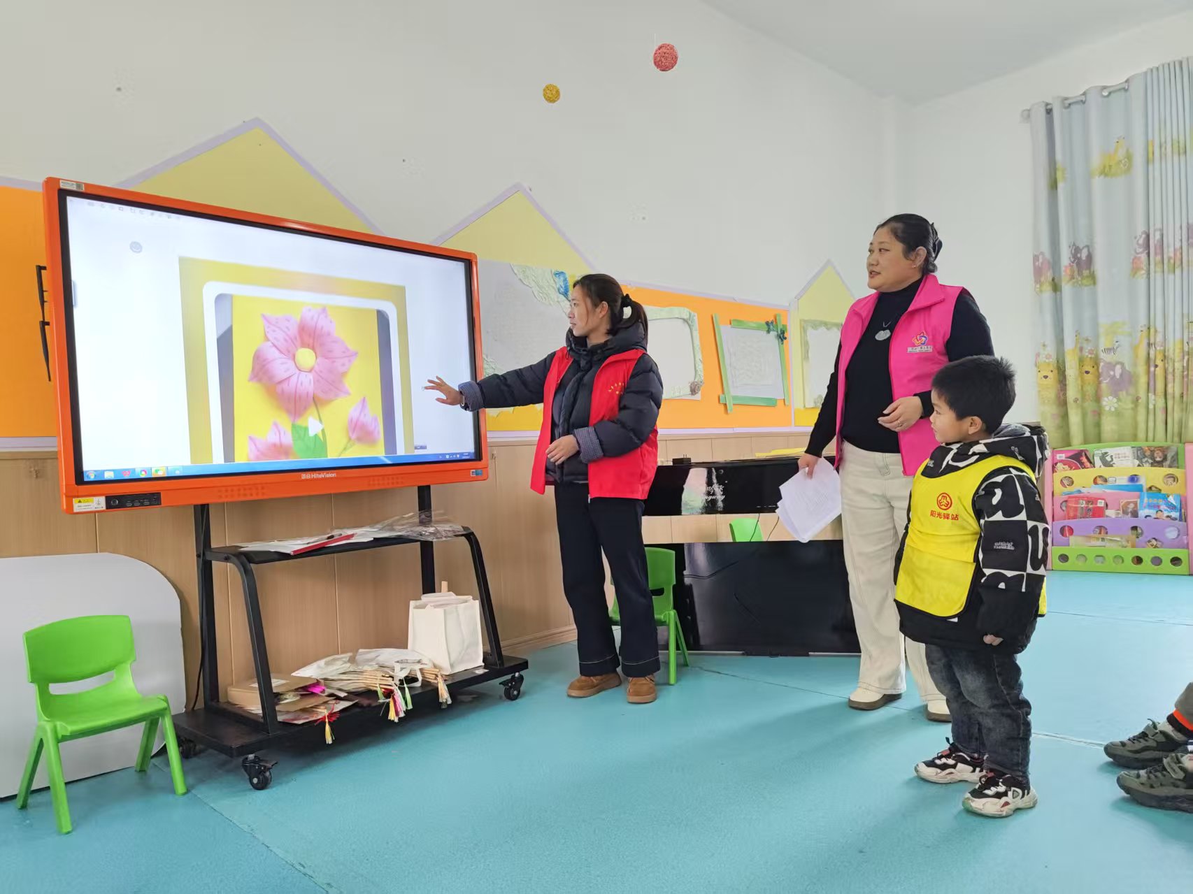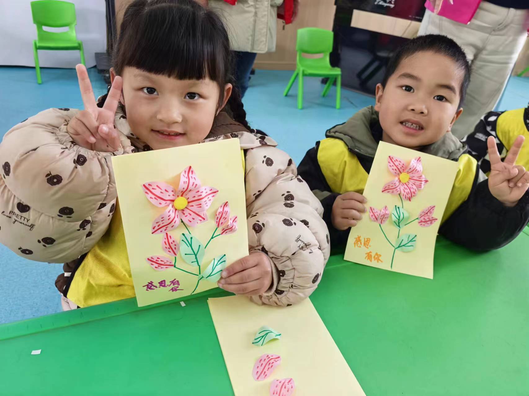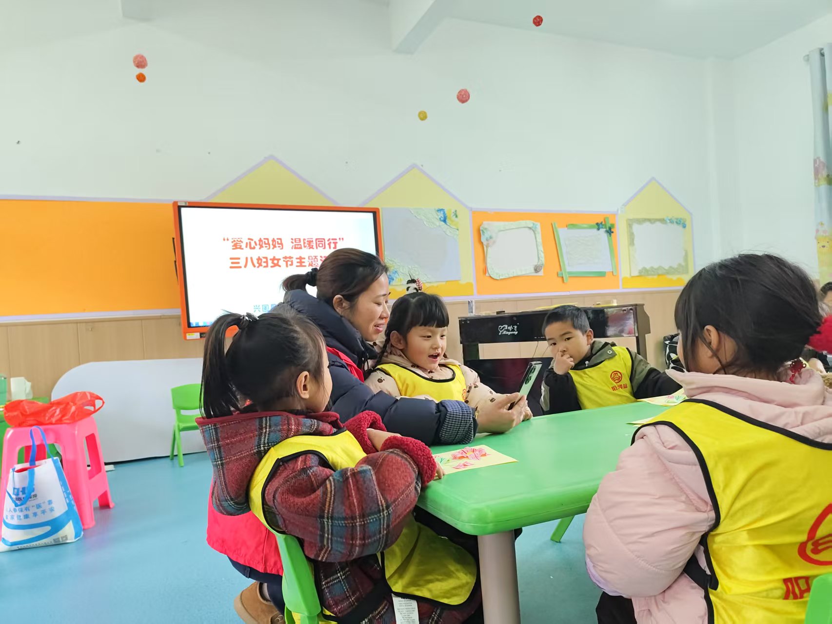 志愿者讲解妇女节的由来,爱心妈妈分享参与公益的初心与故事,与孩子们合作制作手工彩色纸花贺卡,互动亲子游戏“你画我猜”,击鼓传球等活动。接下来,“爱心妈妈”与留守儿童远在他乡的务工的妈妈视频连线,让孩子为妈妈送上节日的祝福!最后,孩子们为爱心妈妈送上亲手制作礼物,并大声说出“谢谢妈妈陪我玩!”