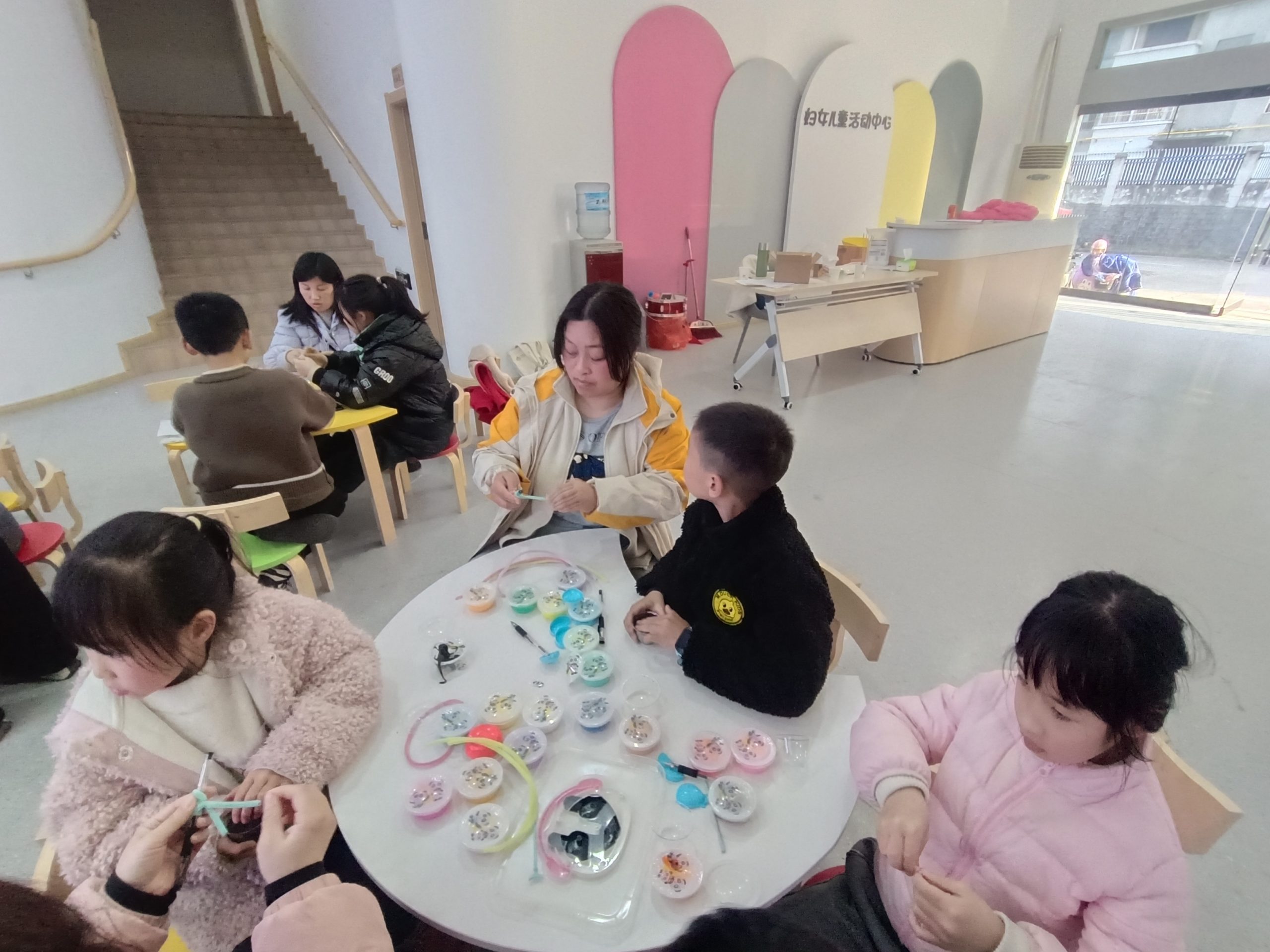 制作小花盆栽。教家长、孩子用扭扭棒制作小花,大家发挥想象制作出自己的特色盆栽,最后小朋友把盆栽送给妈妈。
