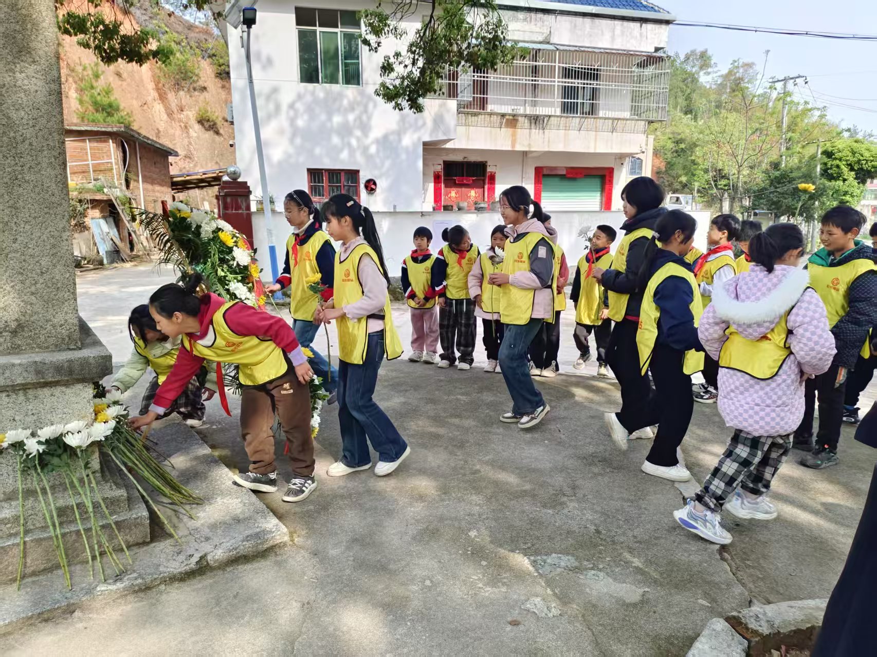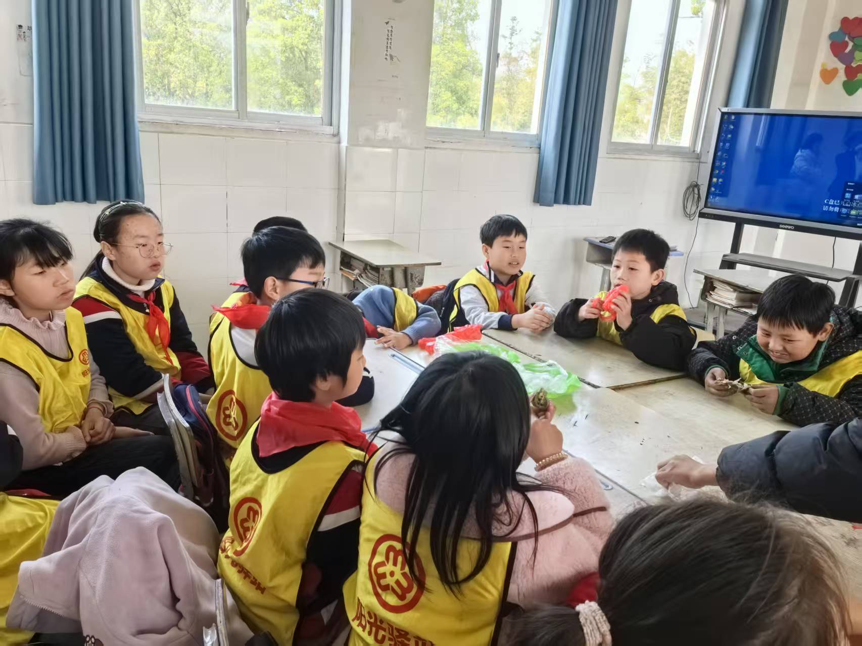 首先,志愿者给孩子们讲述当地先烈们的英雄故事,献花来祭奠先烈。然后带领孩子们踏青田间菜地 寻找艾草,通过视、触、嗅等感觉器官来认识艾草,采摘艾草,孩子们对艾草进行清洗,焯水煮沸,将艾草与糯米粉揉成青团。最后,将制作好的青团上锅蒸熟,品尝青团。