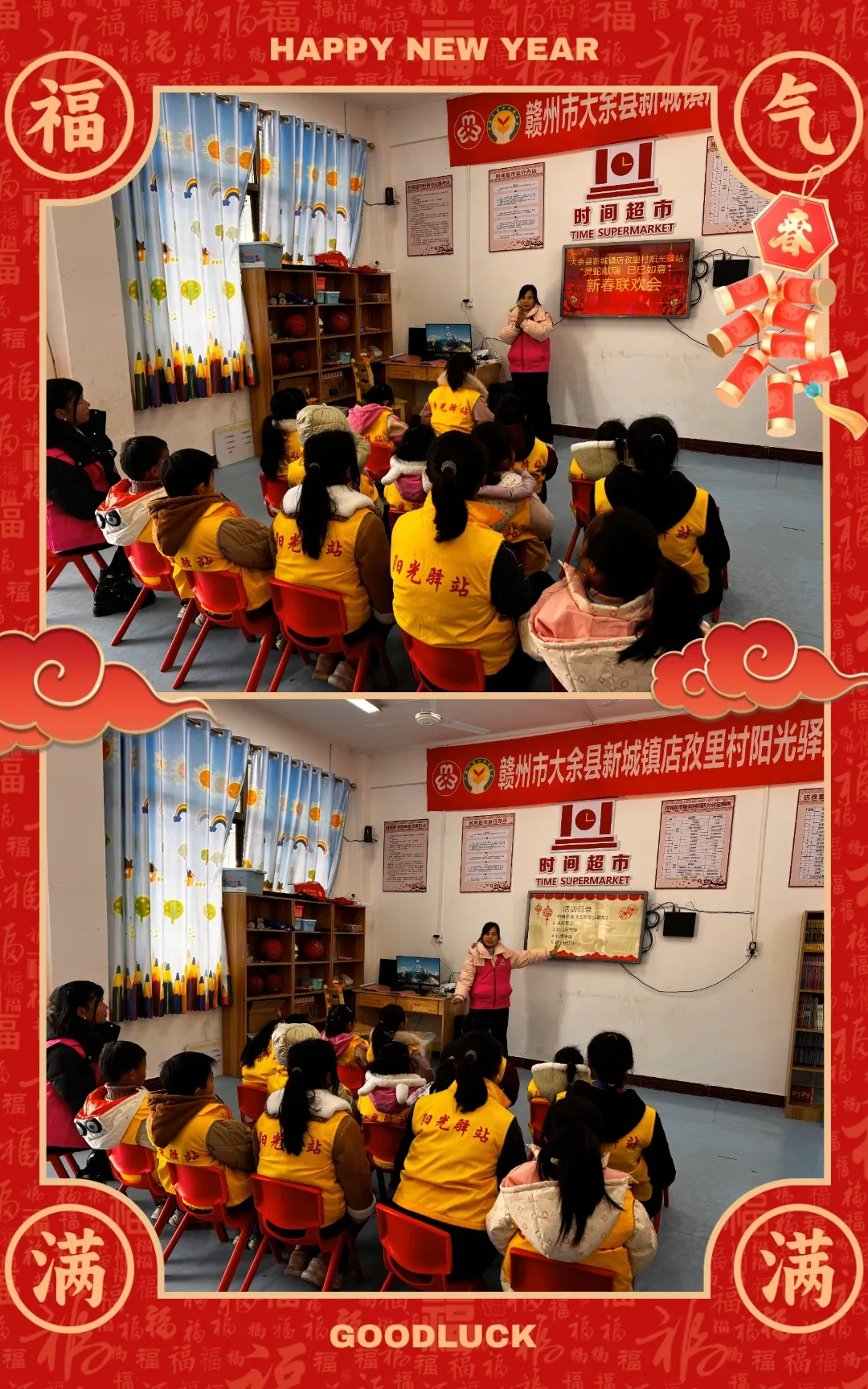 大余县新城镇店孜里村阳光驿站一直致力于为当地儿童提供一个充满关爱和成长机会的空间。随着春节的脚步临近,为了庆祝农历新年,同时弘扬中华民族传统文化,阳光驿站精心策划了一场别开生面的新春联欢会——“灵蛇献瑞 巳巳如意”。