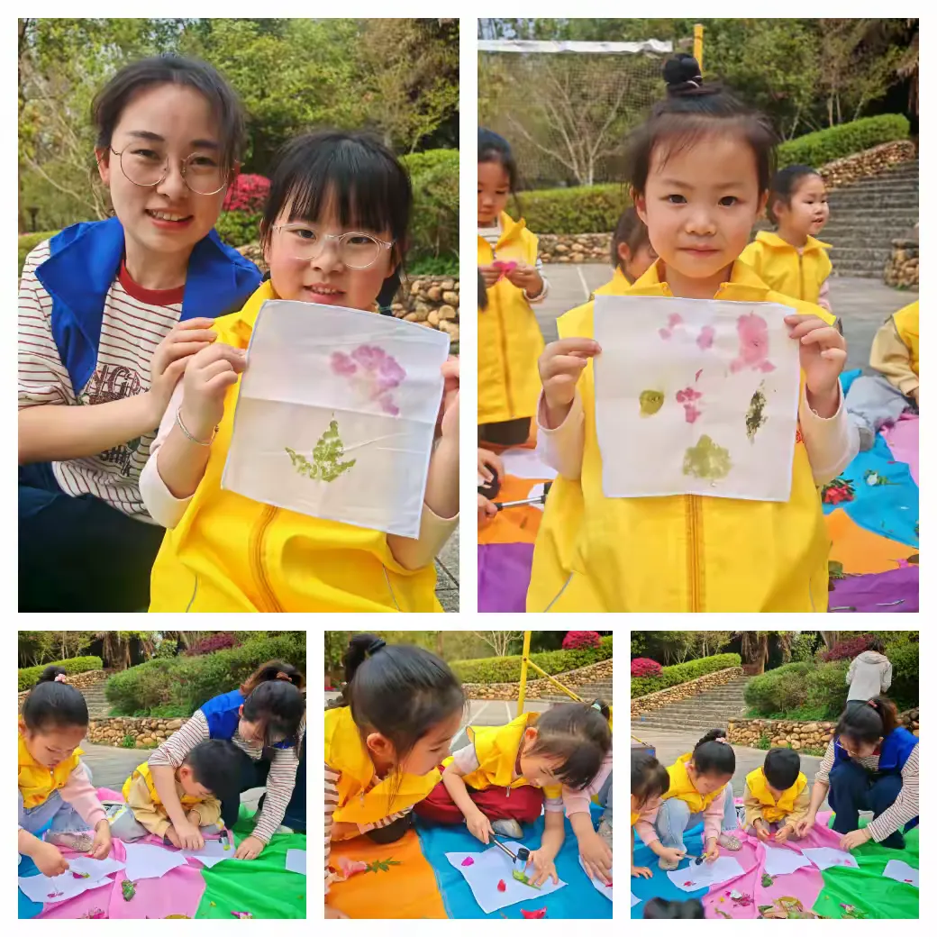 爱心妈妈带领孩子们将叶片按压在素色方巾上,用小锤轻轻敲打拓印出树叶、花朵脉络的肌理。绿意、粉霞、金黄在布面上晕染,一件件充满自然气息的拓印作品见证着合作的温暖瞬间。