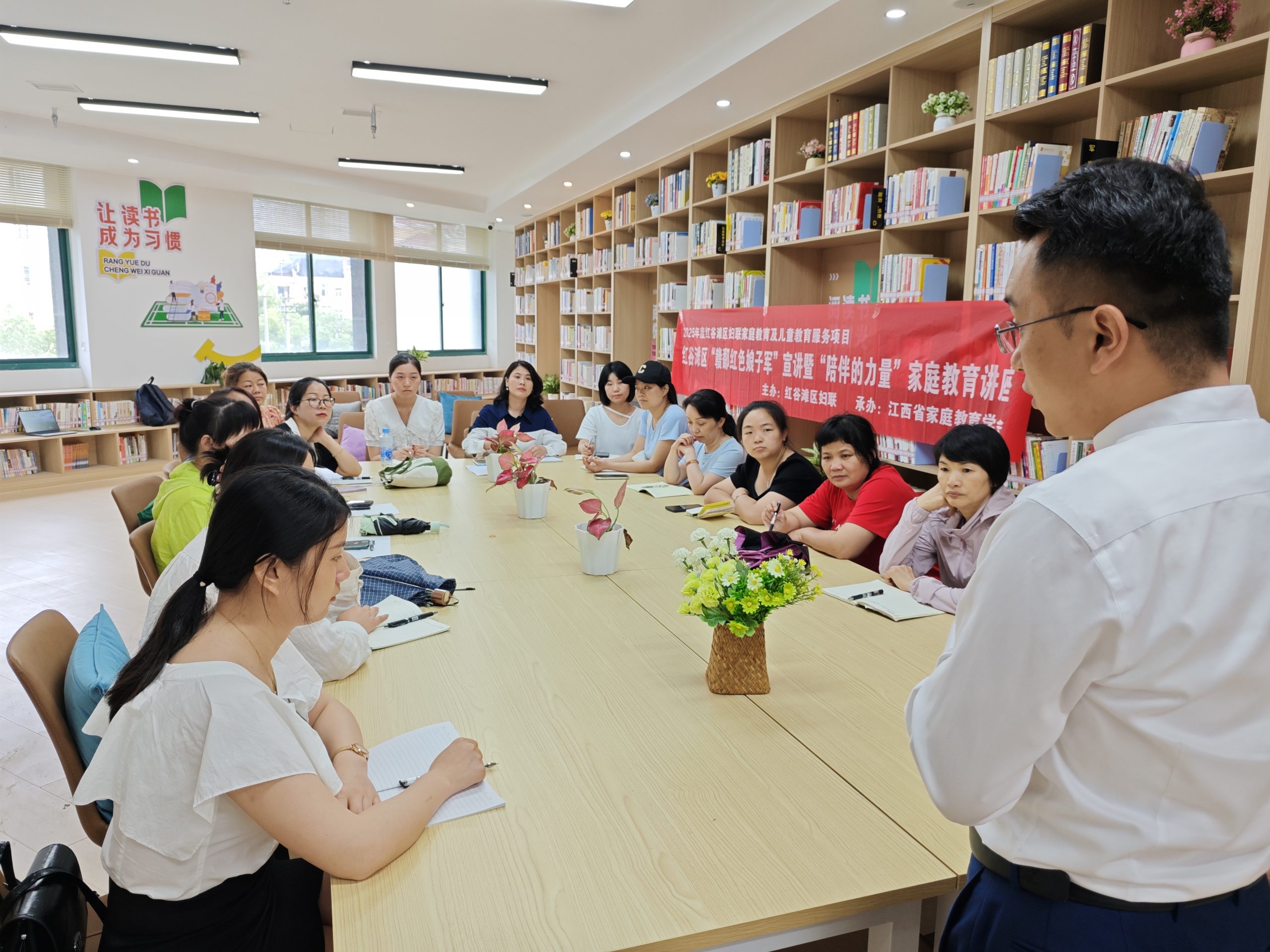 为深入贯彻《中华人民共和国家庭教育促进法》,帮助家长掌握科学育儿方法,构建和谐亲子关系,6月10日,由红谷滩区妇联主办,沙井街道妇联、江西省家庭教育学会承办的”赣鄱红色娘子军”宣讲暨”陪伴的力量”家庭教育讲座在沙井街道办事处温馨开展。江西省家庭教育学会会员、资深讲师贵亮以《科学养育 做不焦虑的父母》为主题,为现场20余名家长带来了一场”干货满满”的家庭教育课。