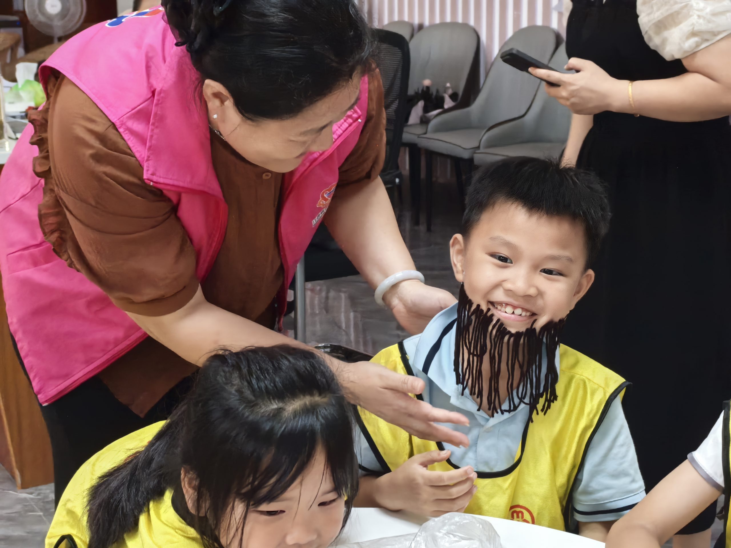 活动从小朋友开场舞《小手牵大手》开始,请爸爸和爷爷、外公一起感受温馨的氛围。接下来工作人员向儿童介绍一本关于父亲的绘本故事,并声情并茂的语气向儿童及家长讲述这个故事。然后开始胡须秀游戏,最后工作人员带领孩子们一起制作一本爸爸超能力小书,孩子可以自由发挥把自己心中的父亲或爷爷、外公的形象刻画在小书里。