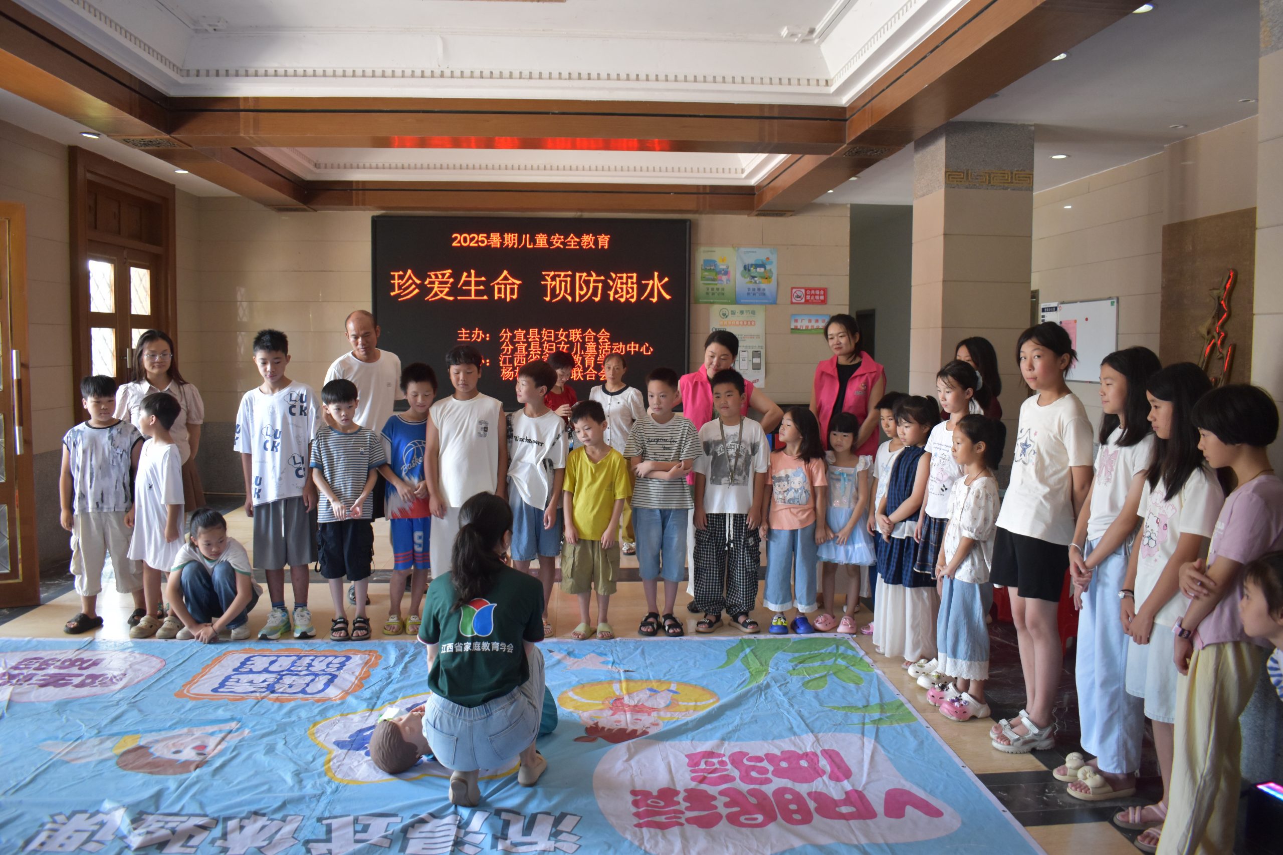 “遇到同伴溺水,千万不能手拉手施救!要立即大声呼救,寻找身边的救生工具……”7月14日,分宜县双林镇双林村委会内,一场别开生面的暑期儿童防溺水安全教育活动正在热烈进行。当天,由分宜县妇联、分宜县妇女儿童活动中心主办的2025年暑期儿童防溺水安全教育活动正式启动,首站在双林镇、杨桥镇、高岚乡、泗水路社区等多地同步开展,100余名儿童及家长通过“理论+实践”的沉浸式学习,掌握了防溺水的“关键一课”。
