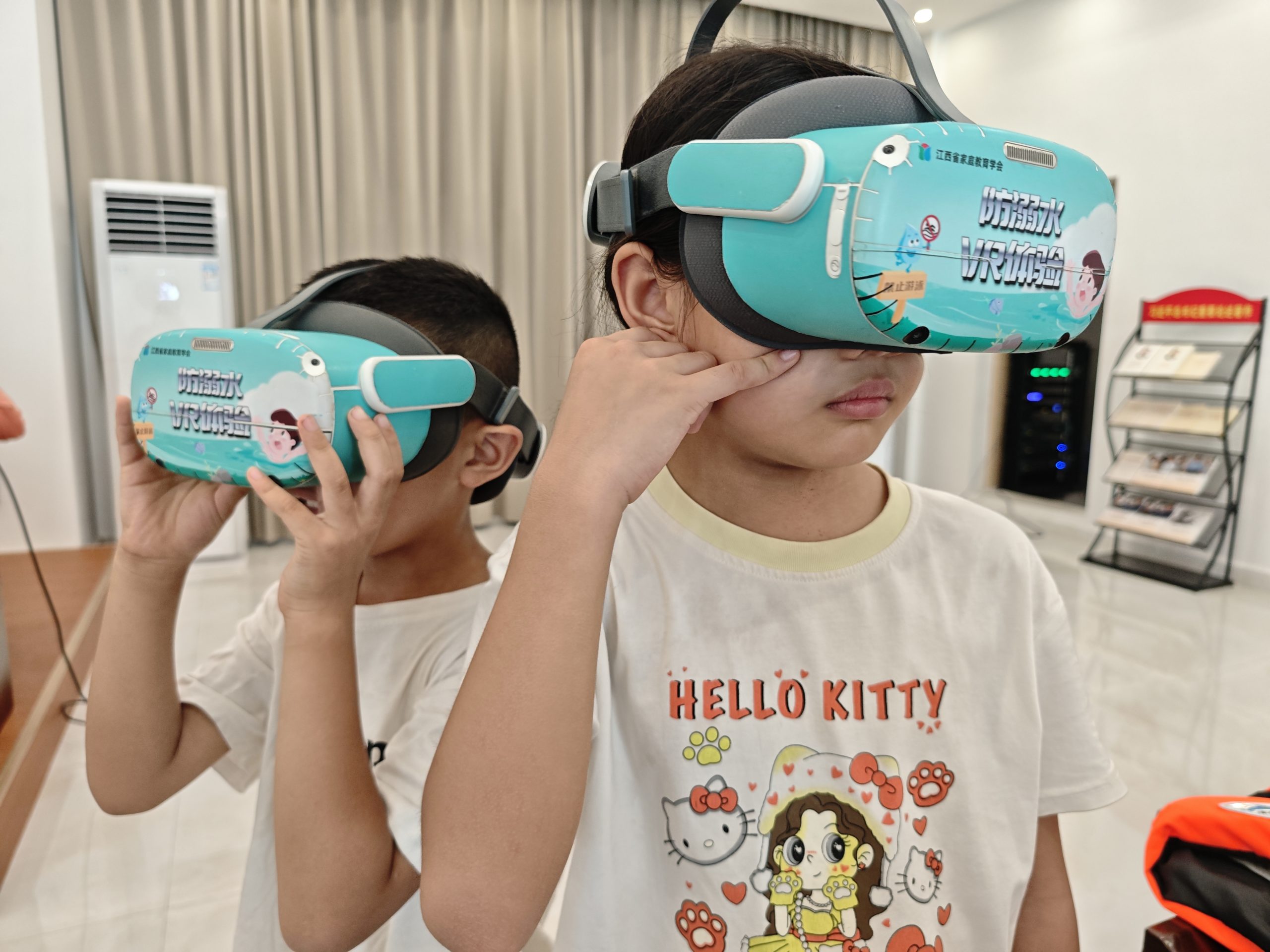 活动中孩子们沉浸式体验VR眼镜,身临其境感受危险,警醒远离危险水域;老师现场教授心肺复苏技能并进行实操指导,掌握急救要领;开展救生衣、救生圈使用教学,学习正确穿戴与有效抛投方法。